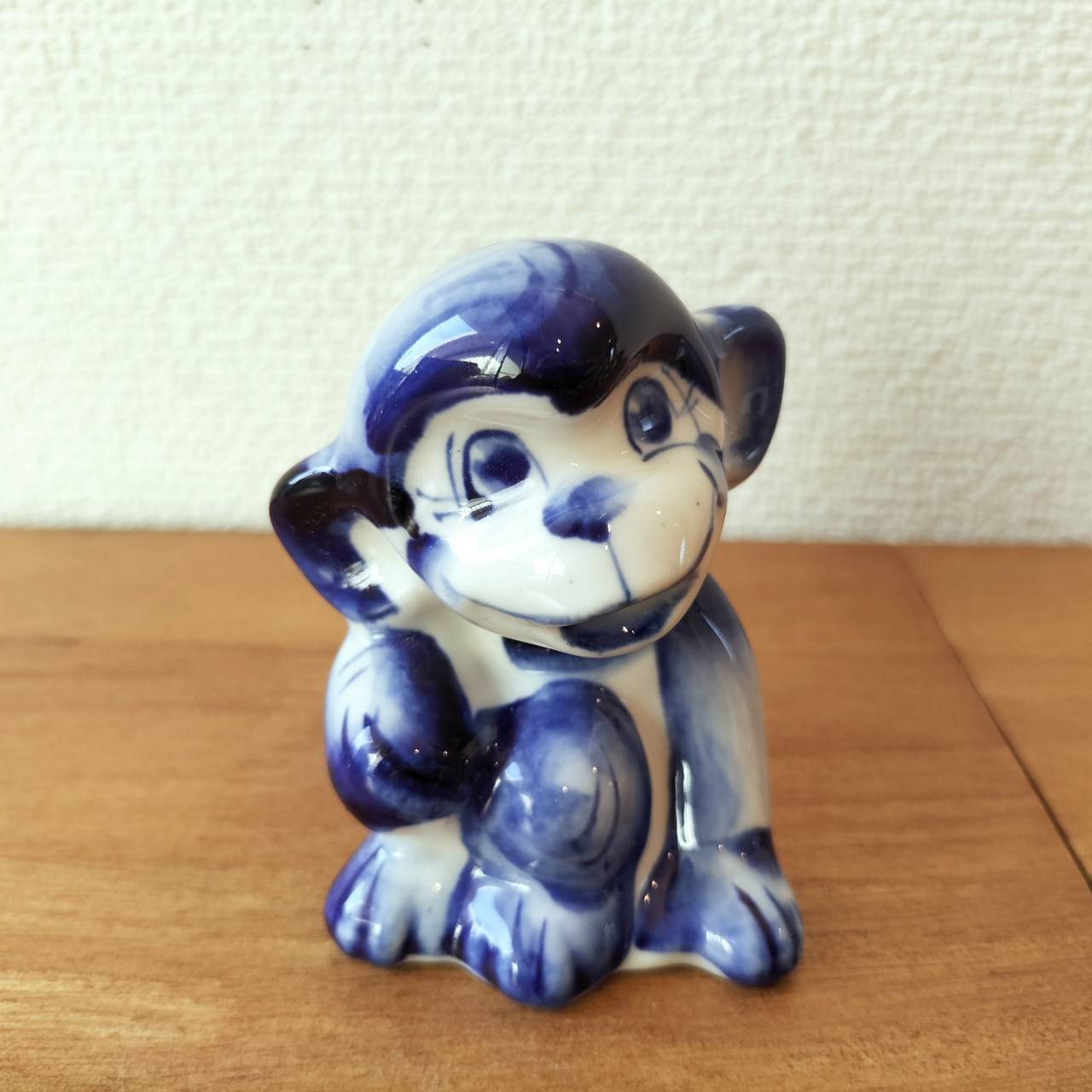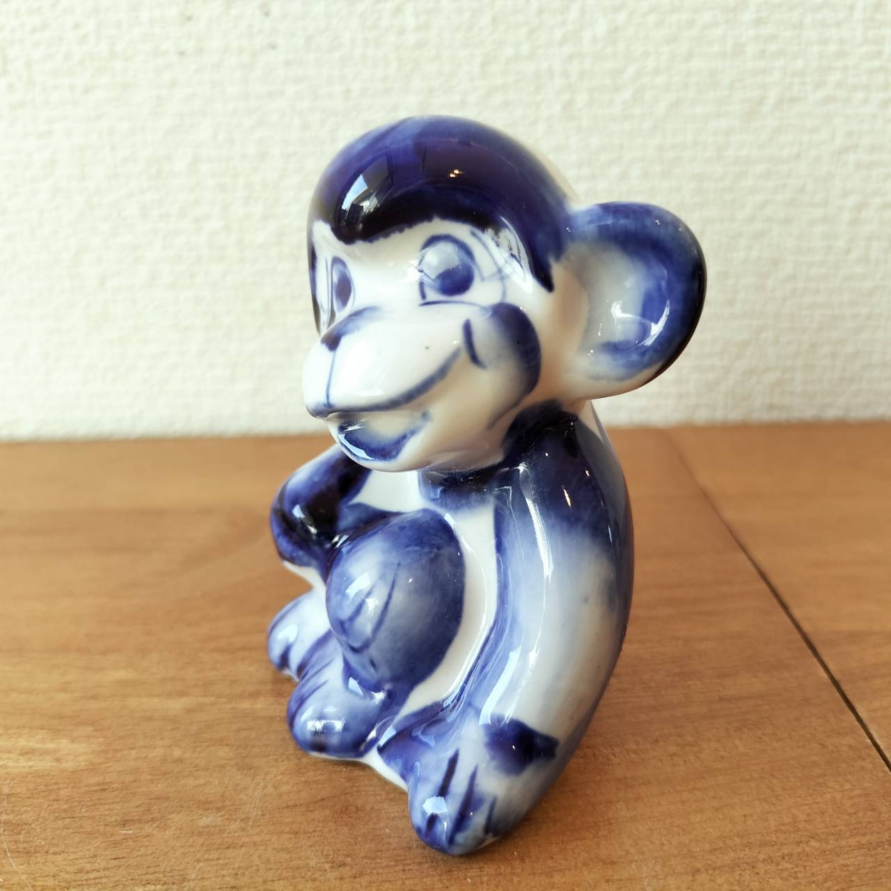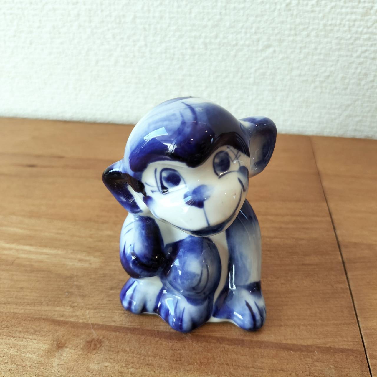 【GZ215】北欧ロシア雑貨 動物陶器 グジェリ焼 【おさるさん】