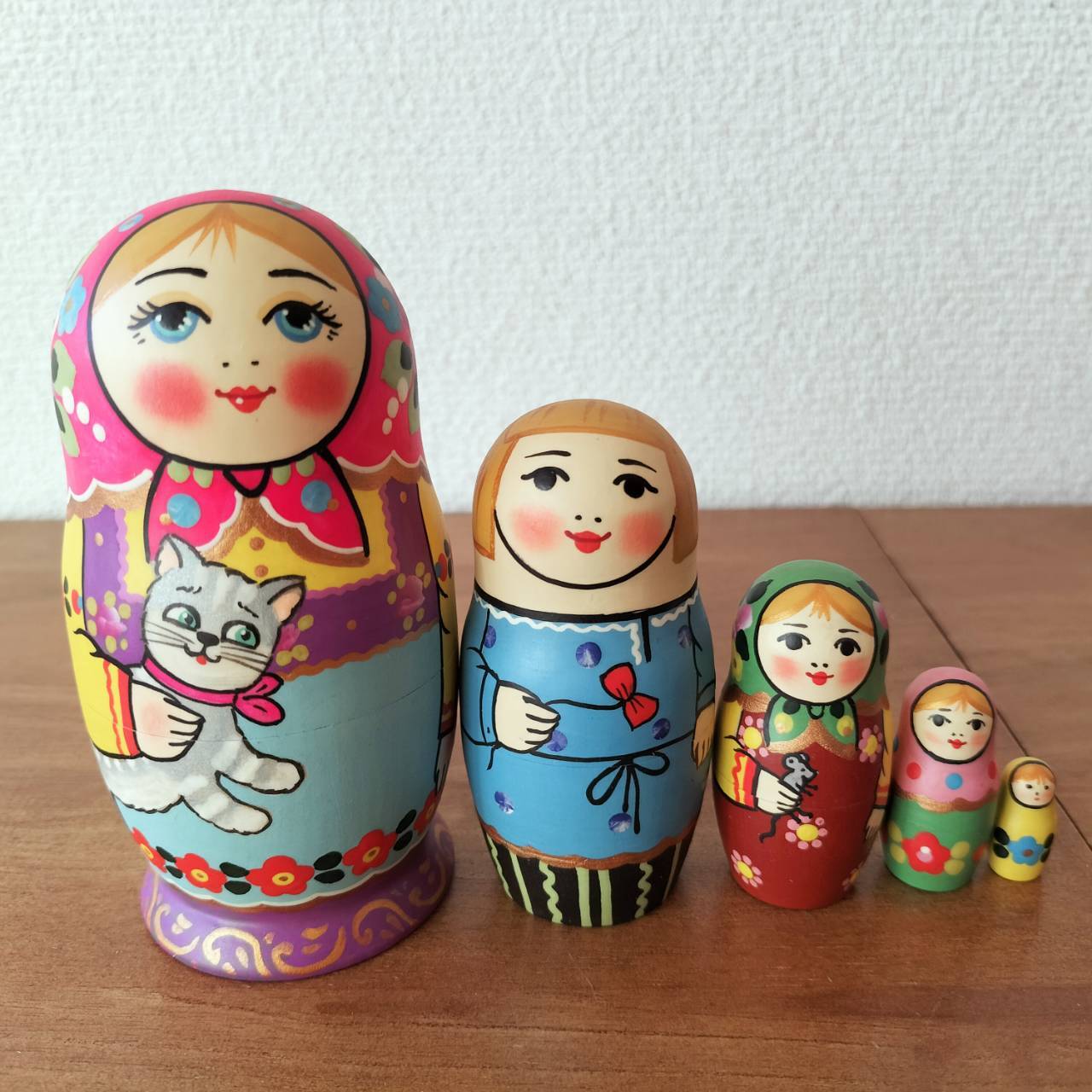 ロシアで有名なナジェージダ・リュボーフィ親子という親子作家から直接譲り受けたマトリョーシカです。ネコをモチーフにしています。