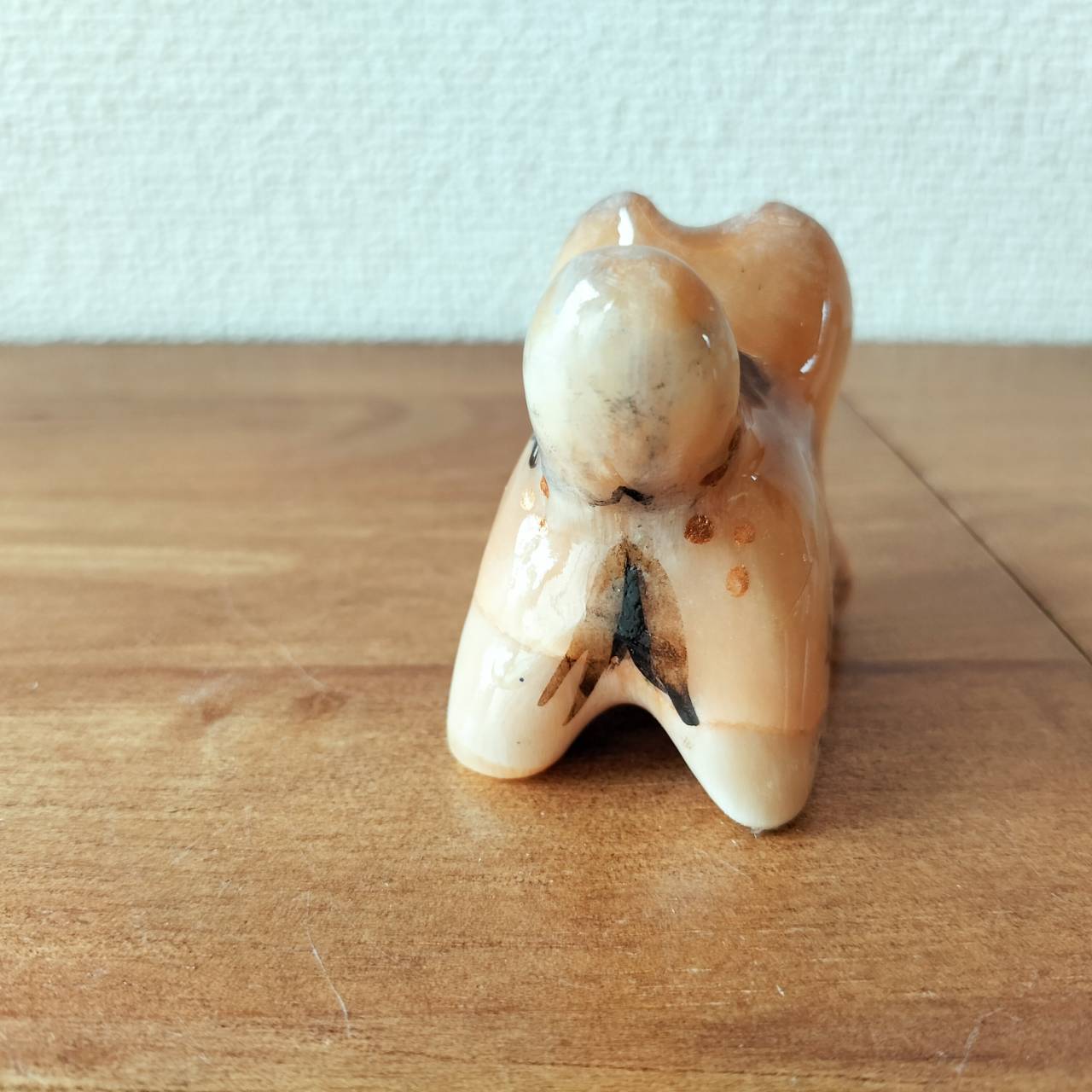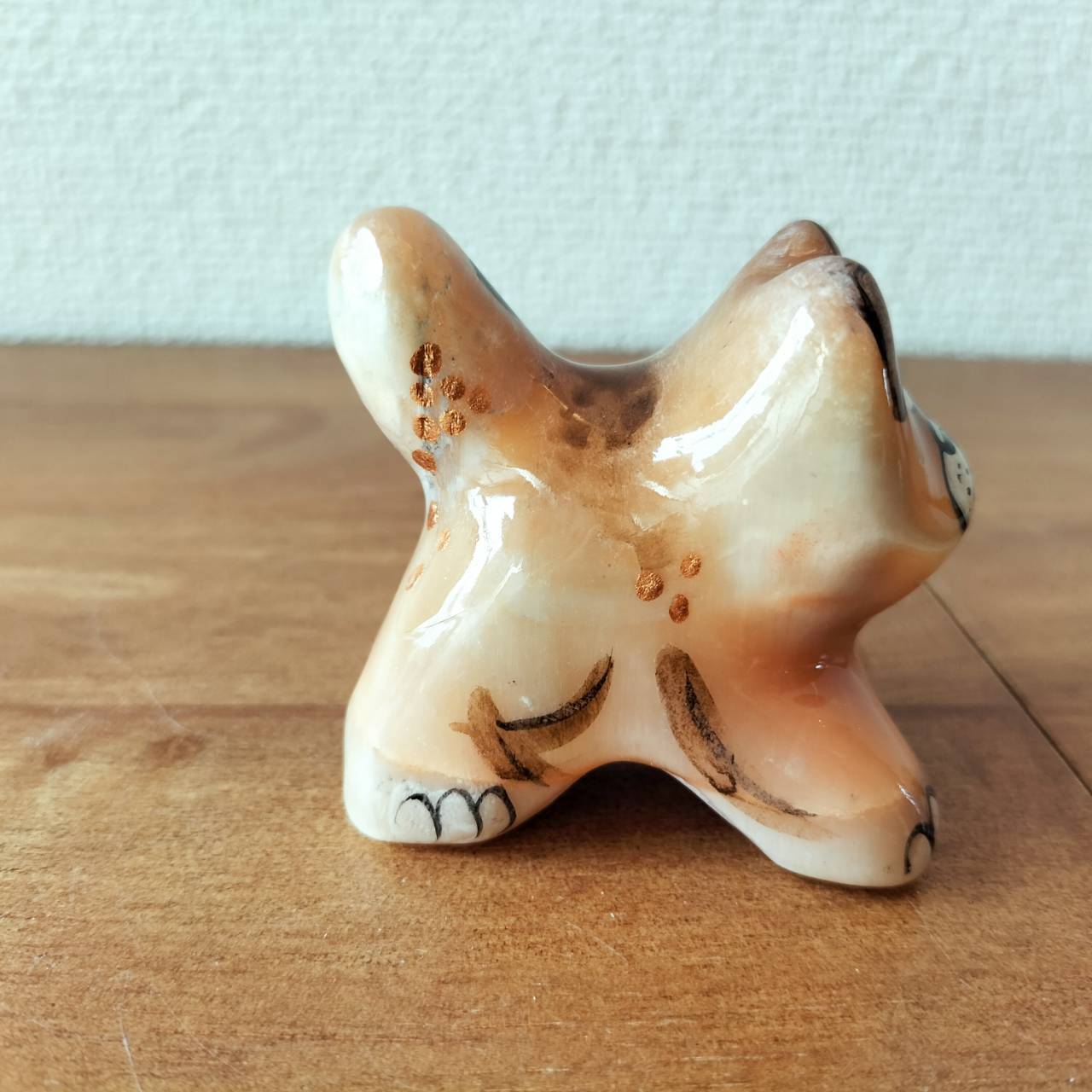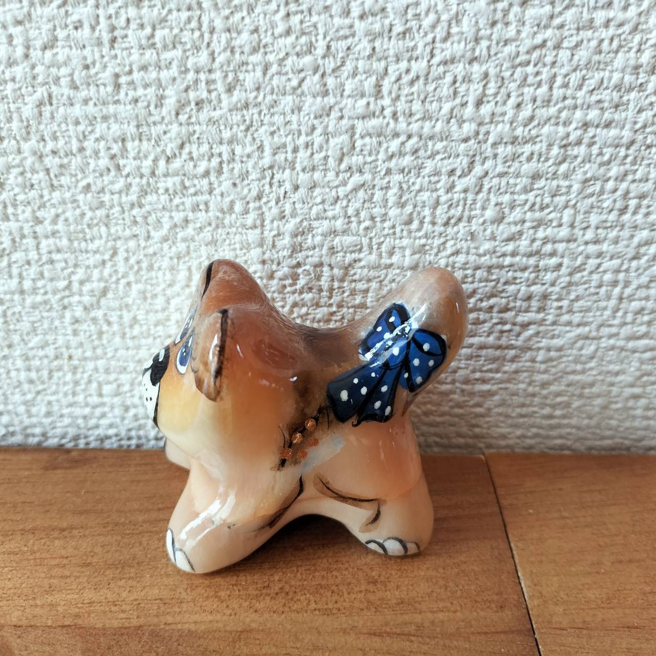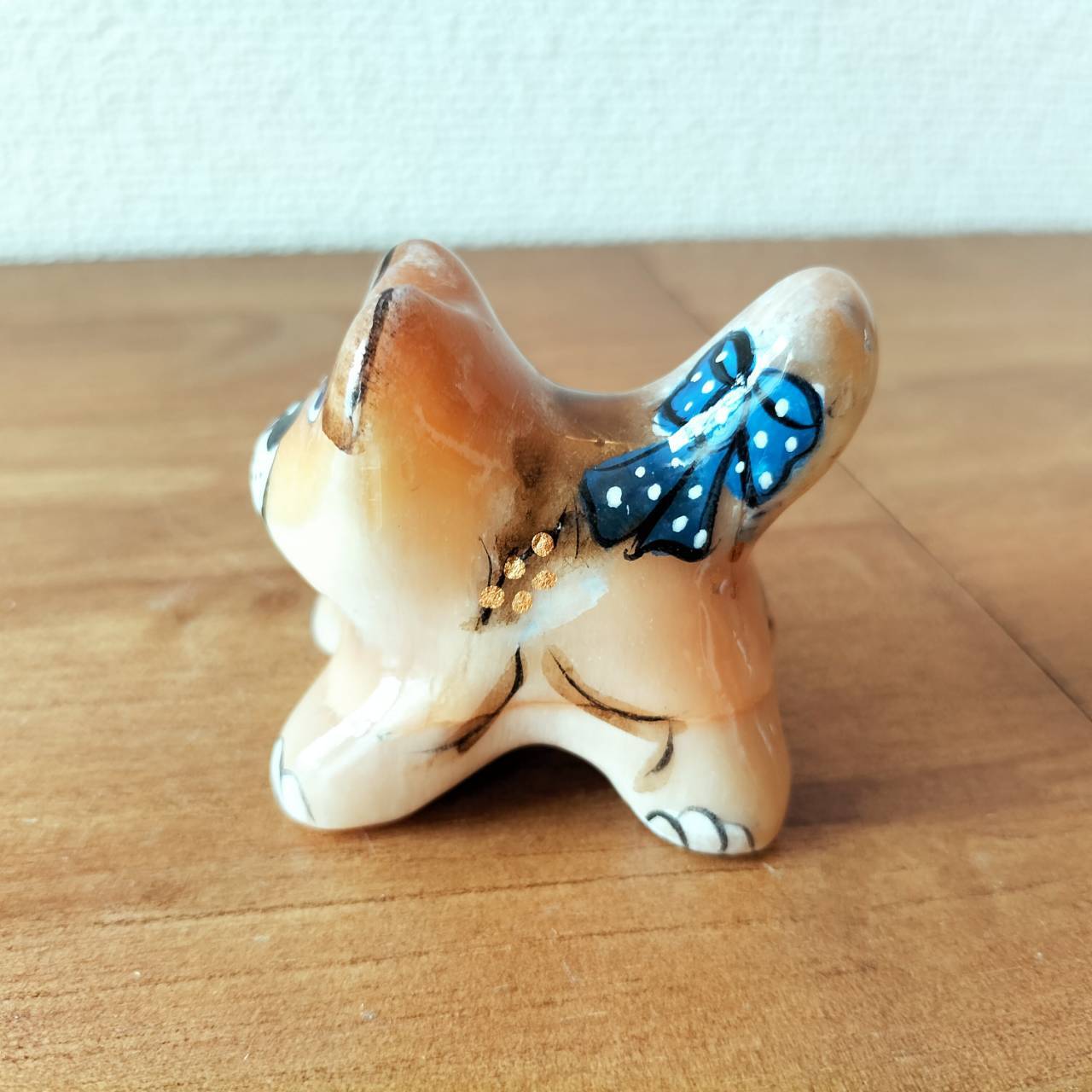 【CEL190】北欧ロシア雑貨天然石・セレナイト 【青いリボンをつけた犬】