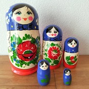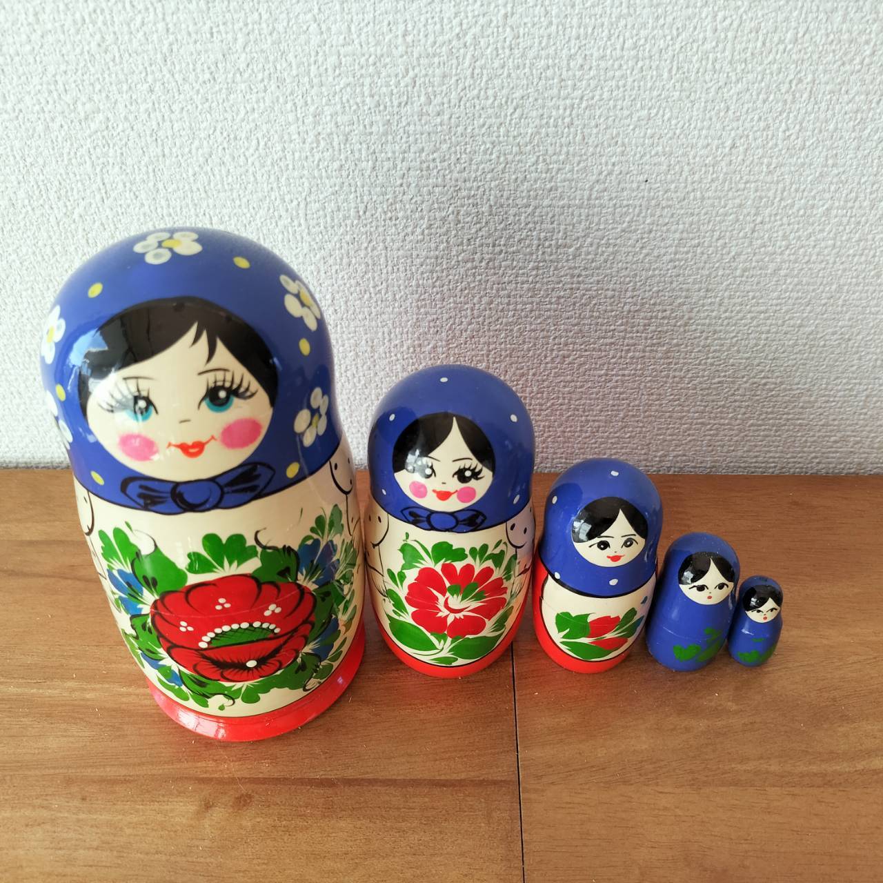ロシアの職人さんによるハンドメイドの作品です。ロシア伝統の原色系べた塗りのカラフルな木製工芸品・マトリョーシカです。自然木の香りがします。