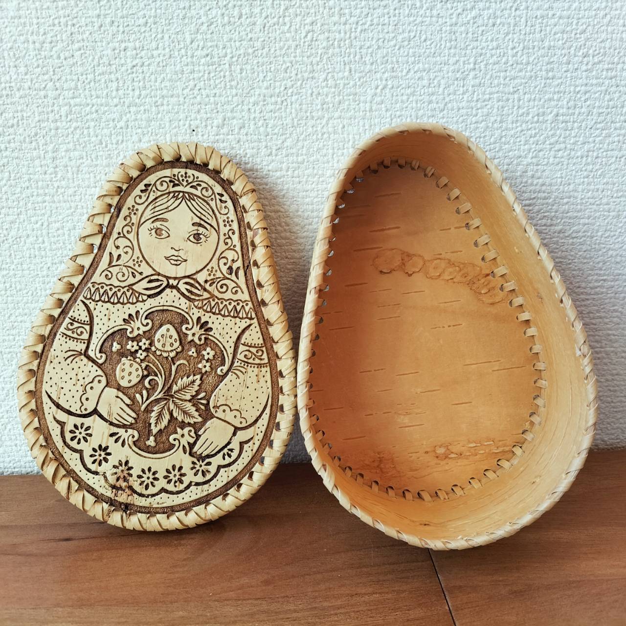 【BE156】北欧ロシア雑貨、ベレスタ・白樺の小物入れ【マトリョーシカ】