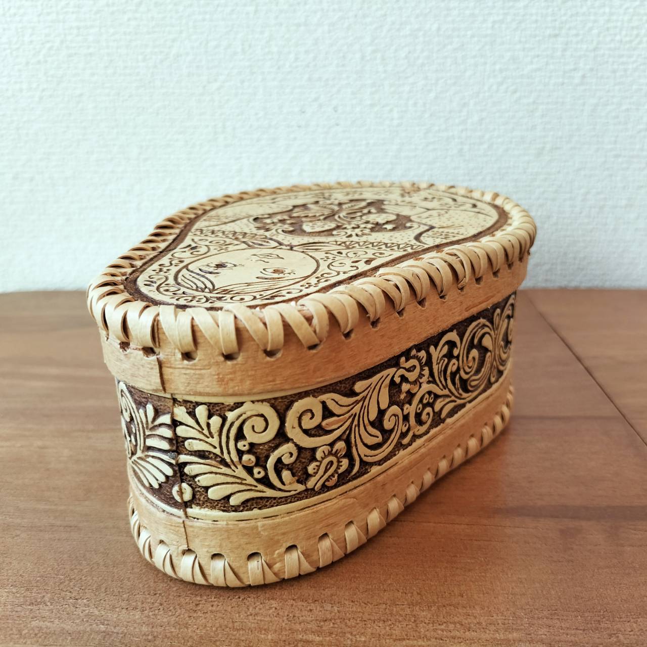 ロシア・北欧の小物入れ、ベレスタです。白樺の真皮で作られている白樺細工です。ベレスタ職人のハンドメイド作品です。