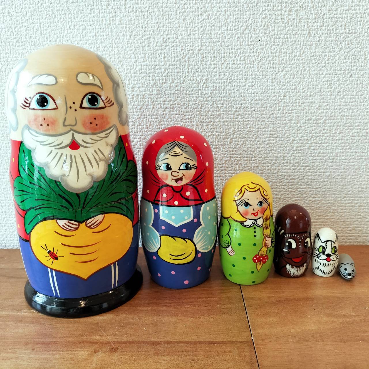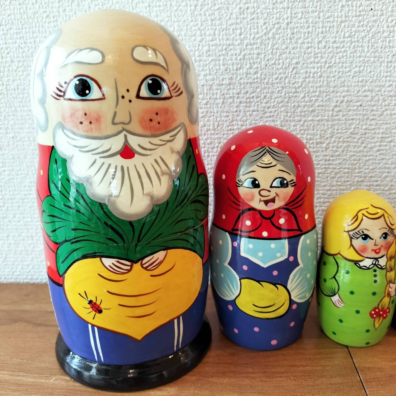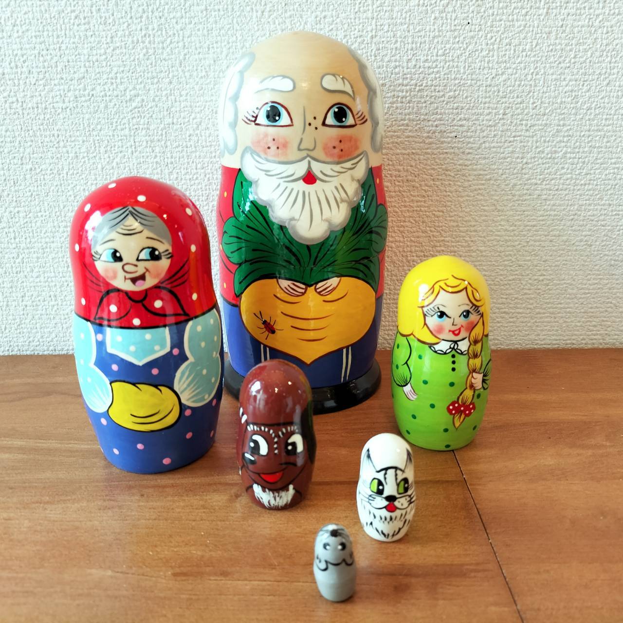 日本でも「おおきなかぶ」の絵本でおなじみの童話をモチーフにしたロシアの職人さんによるハンドメイドのマトリョーシカです。