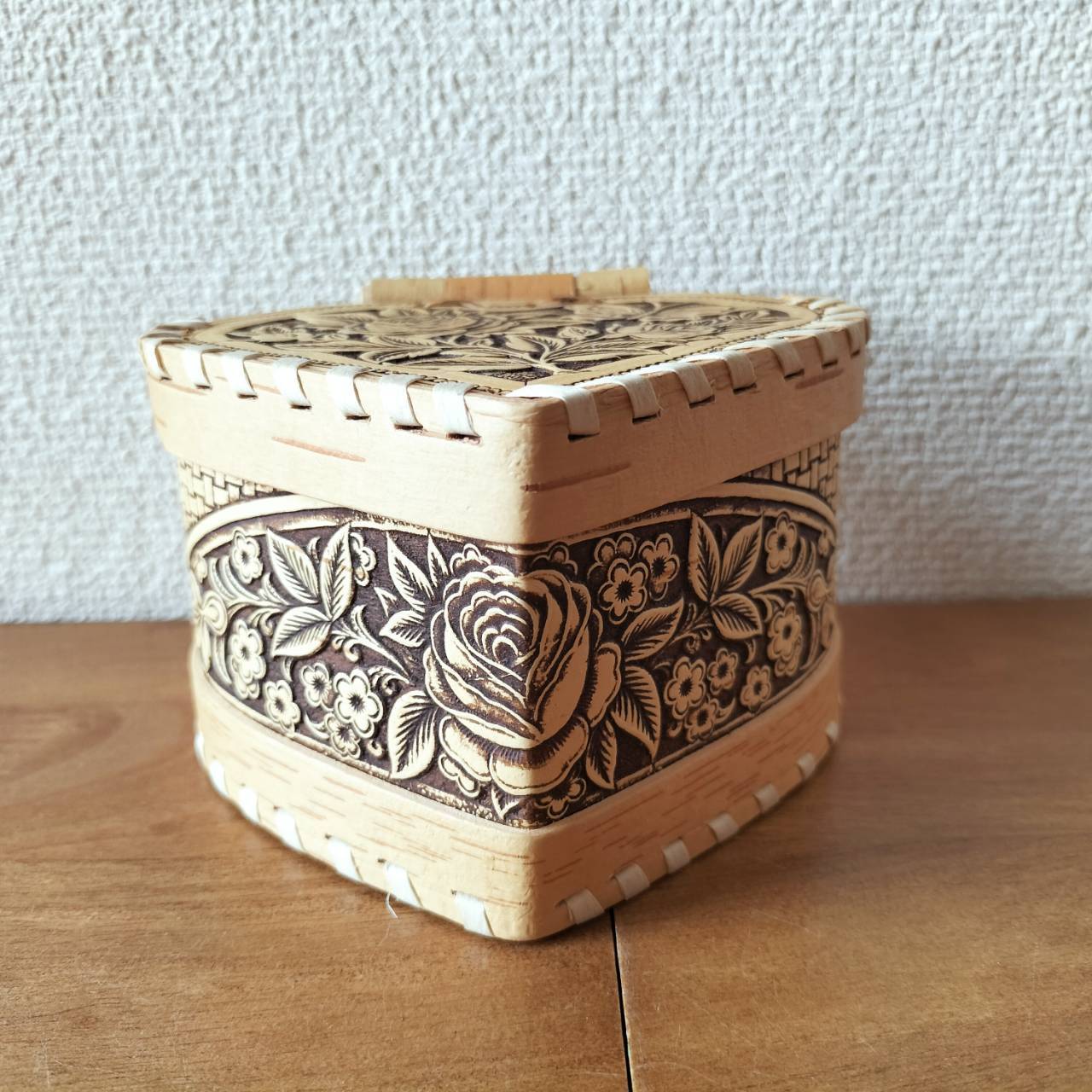 【BE159】北欧ロシア雑貨、ベレスタ・白樺の小物入れ【バラ】