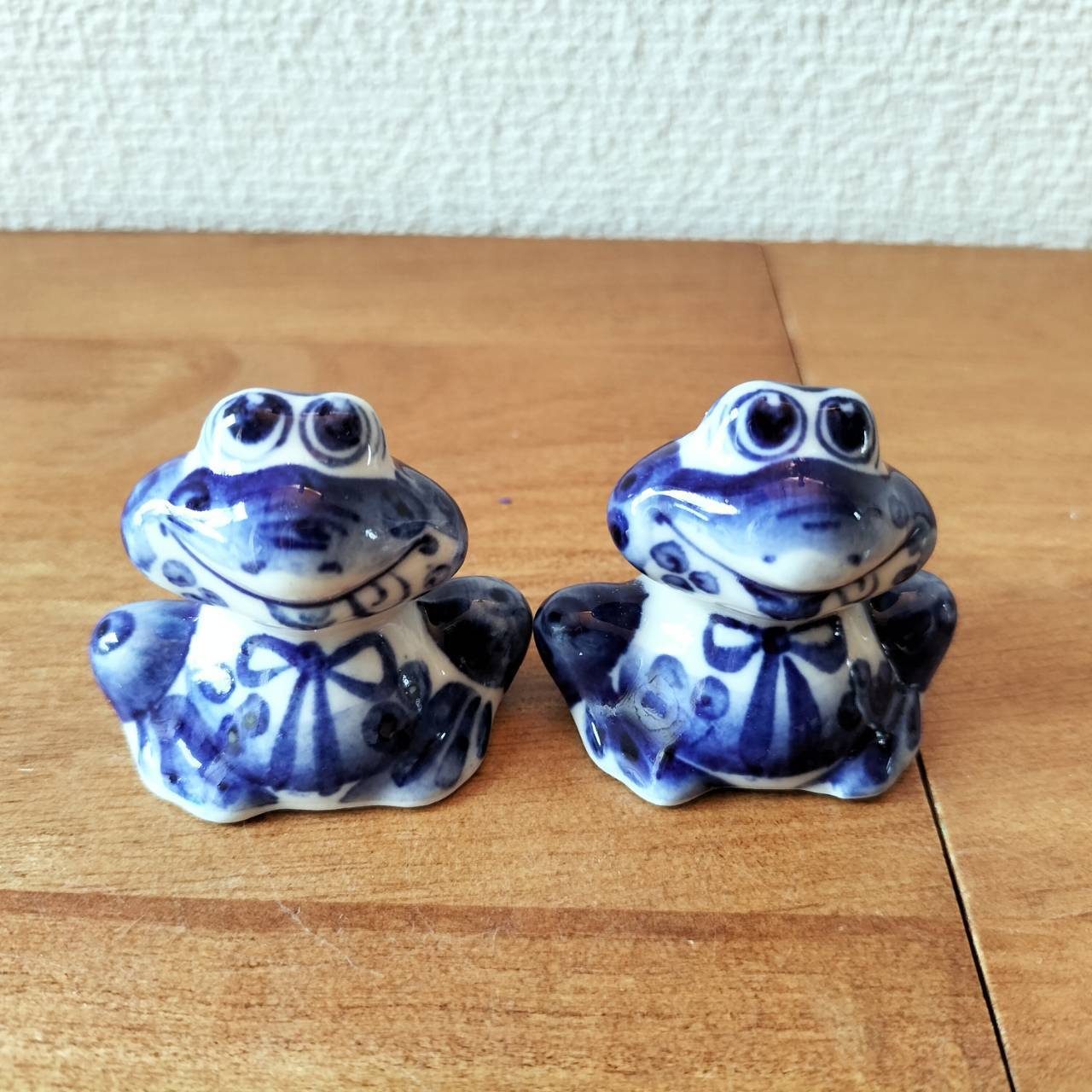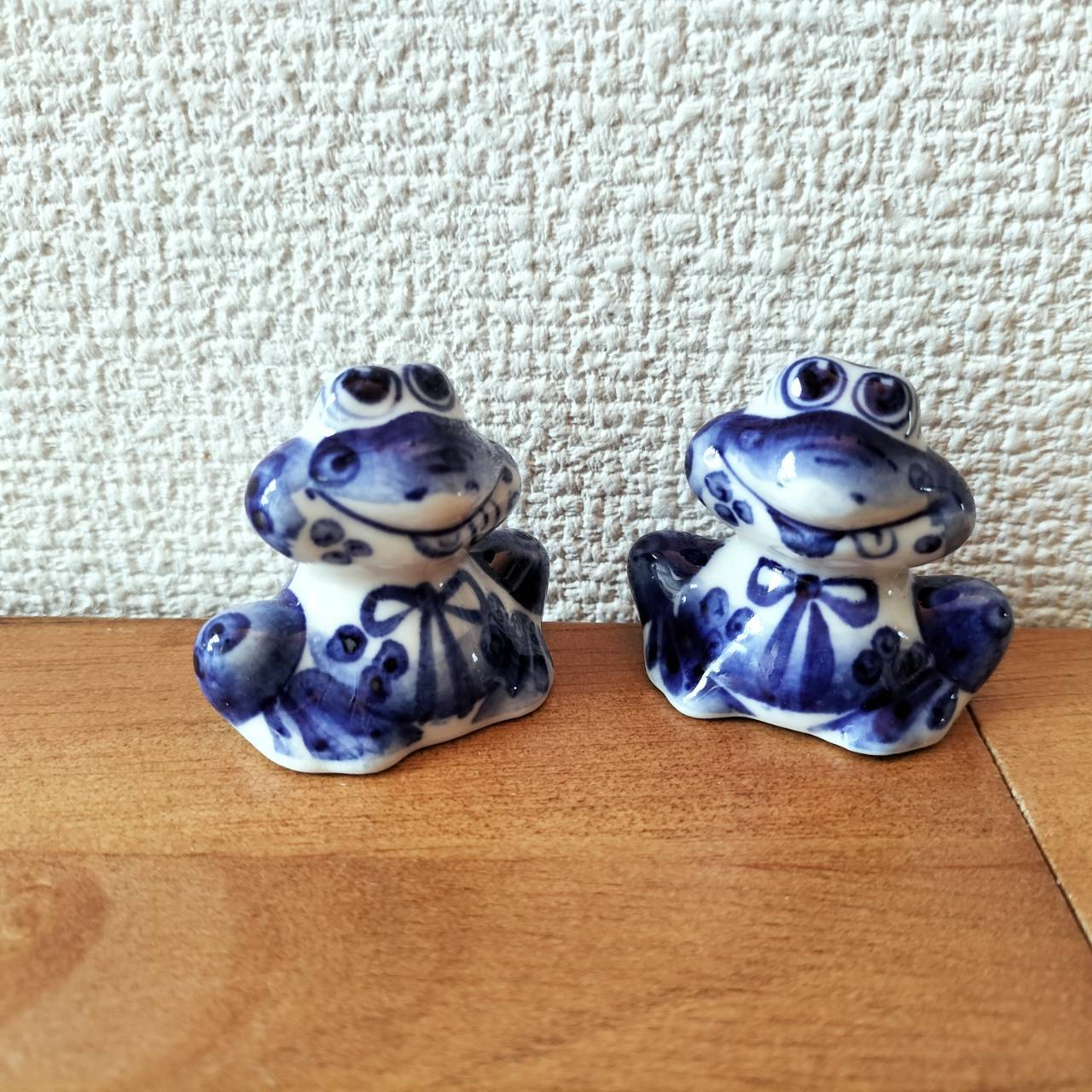 【GZ218】北欧ロシア雑貨 動物陶器 グジェリ焼 【カエル】