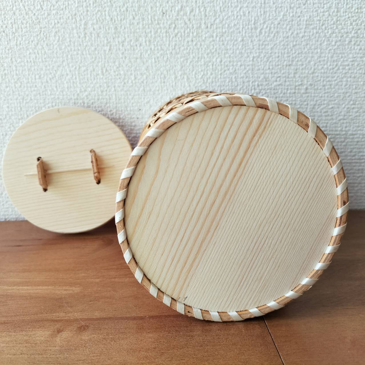 ①素材:白樺の真皮、木