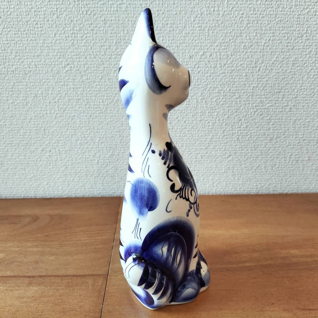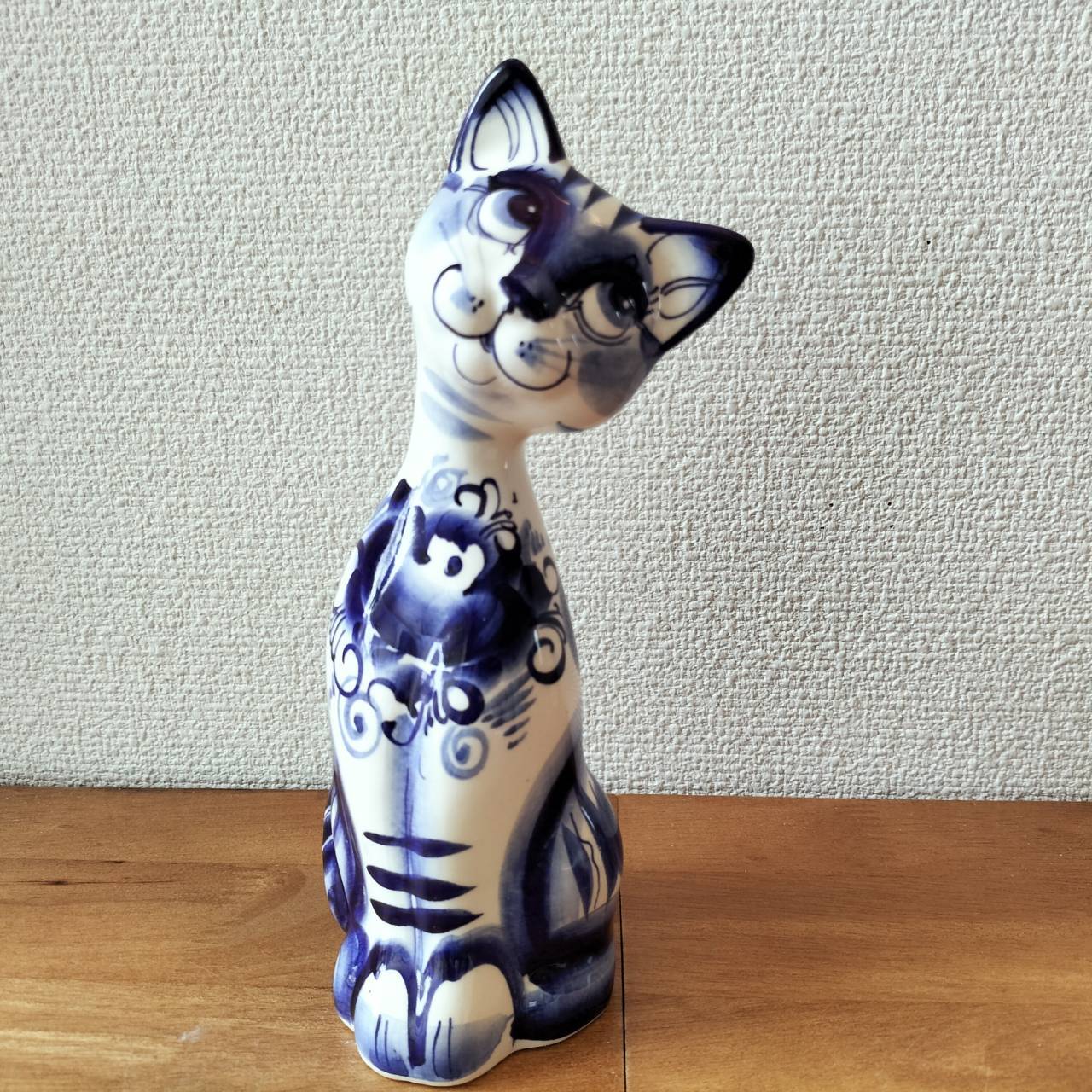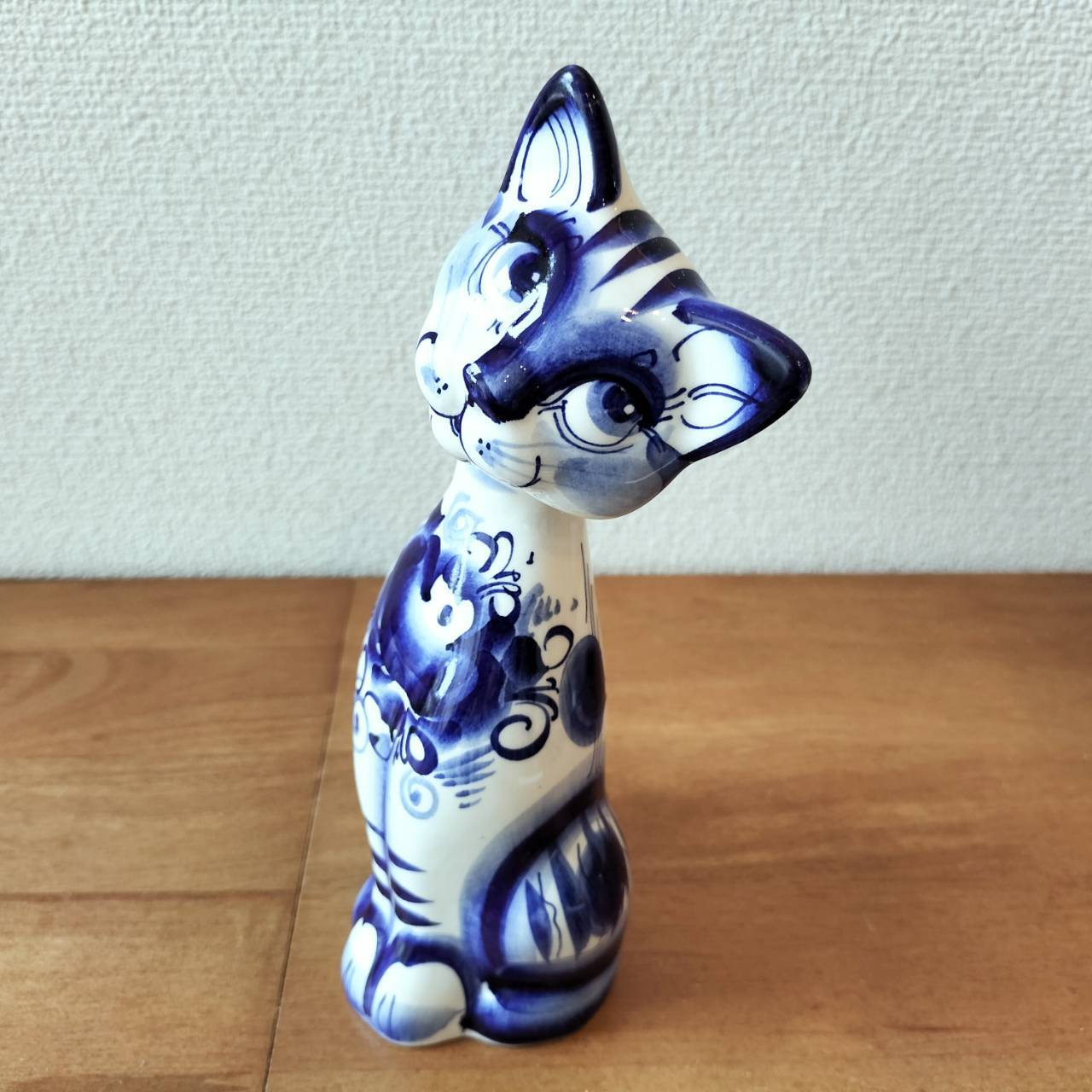 【GZ227】北欧ロシア雑貨 動物陶器 グジェリ焼 【品のある猫】