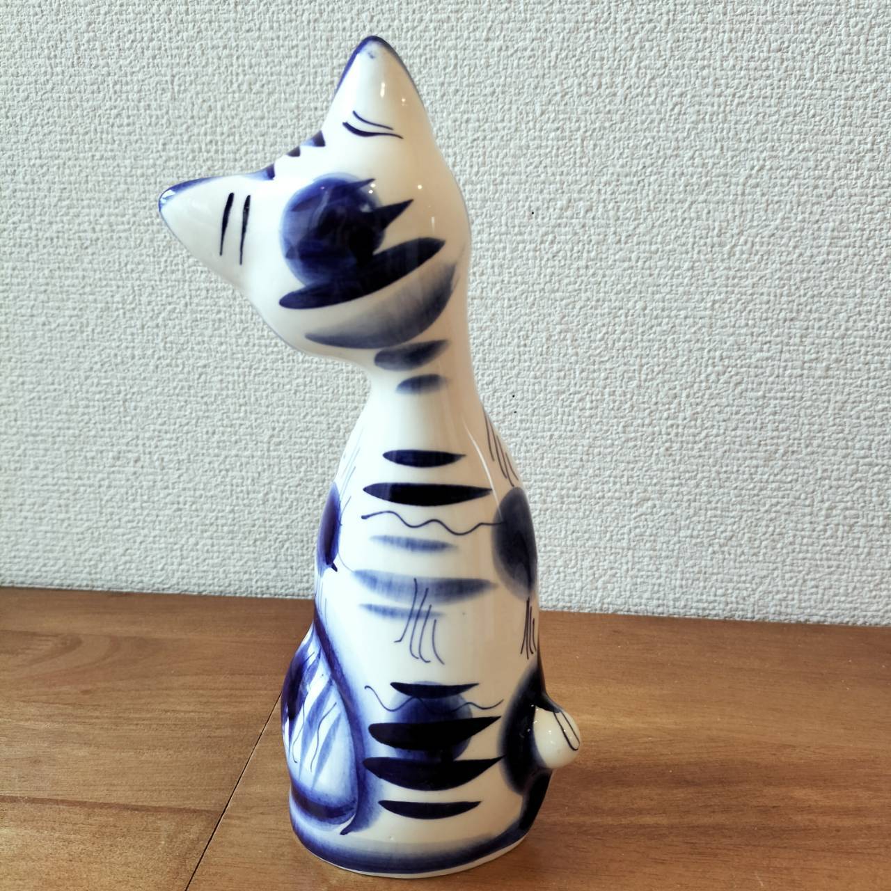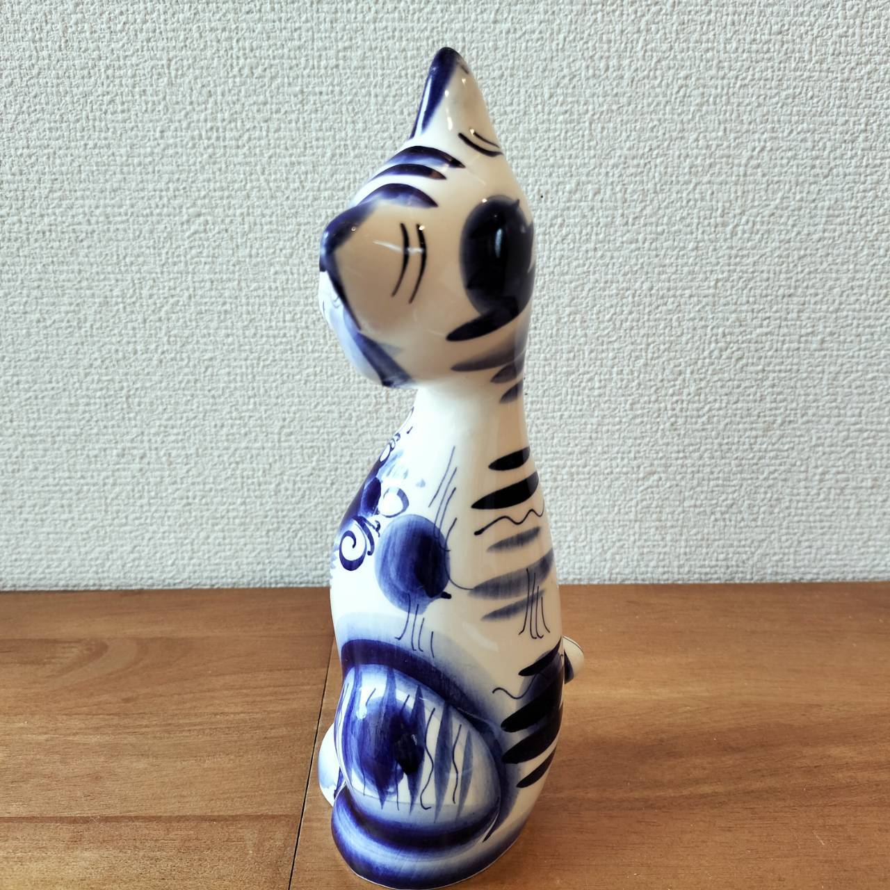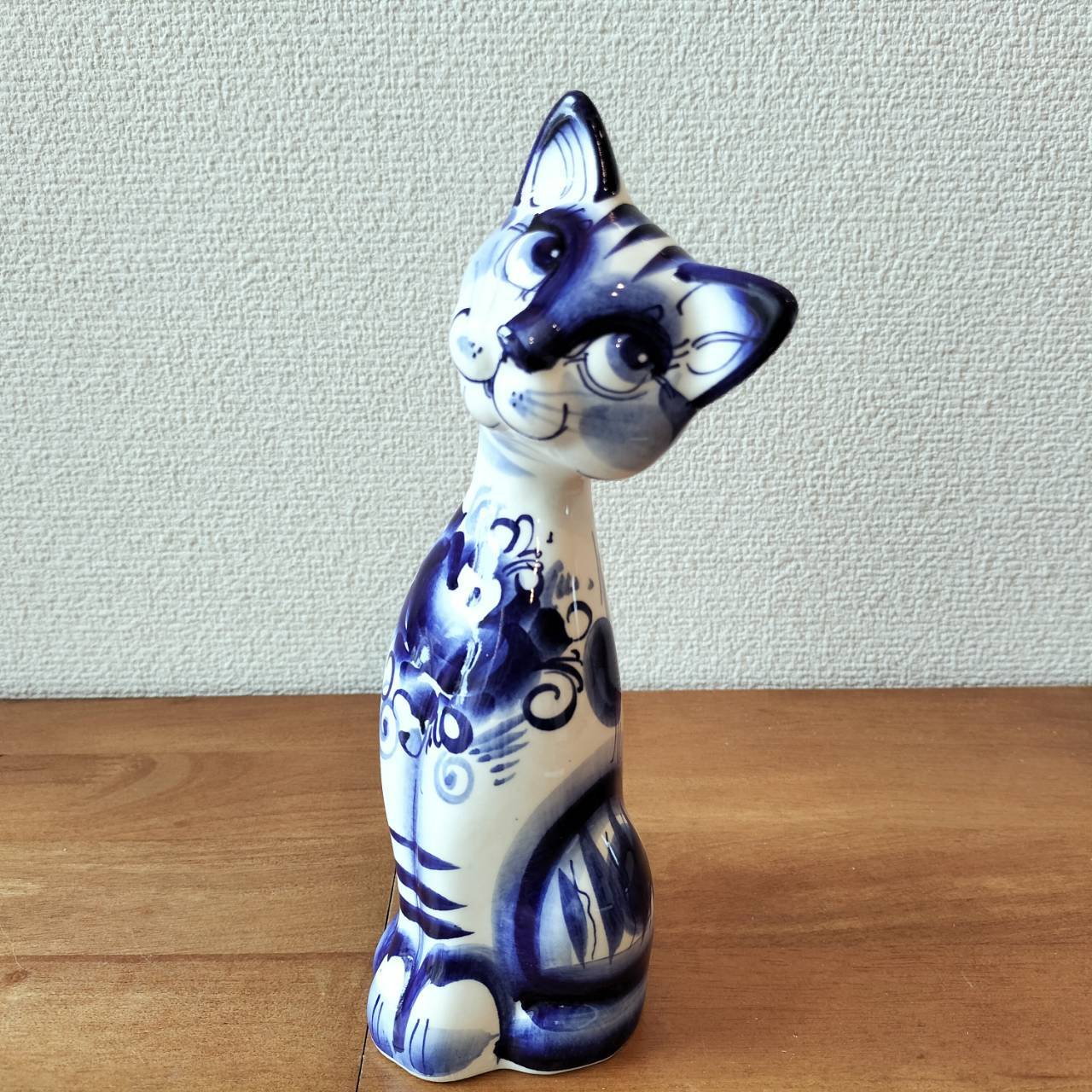 【GZ227】北欧ロシア雑貨 動物陶器 グジェリ焼 【品のある猫】