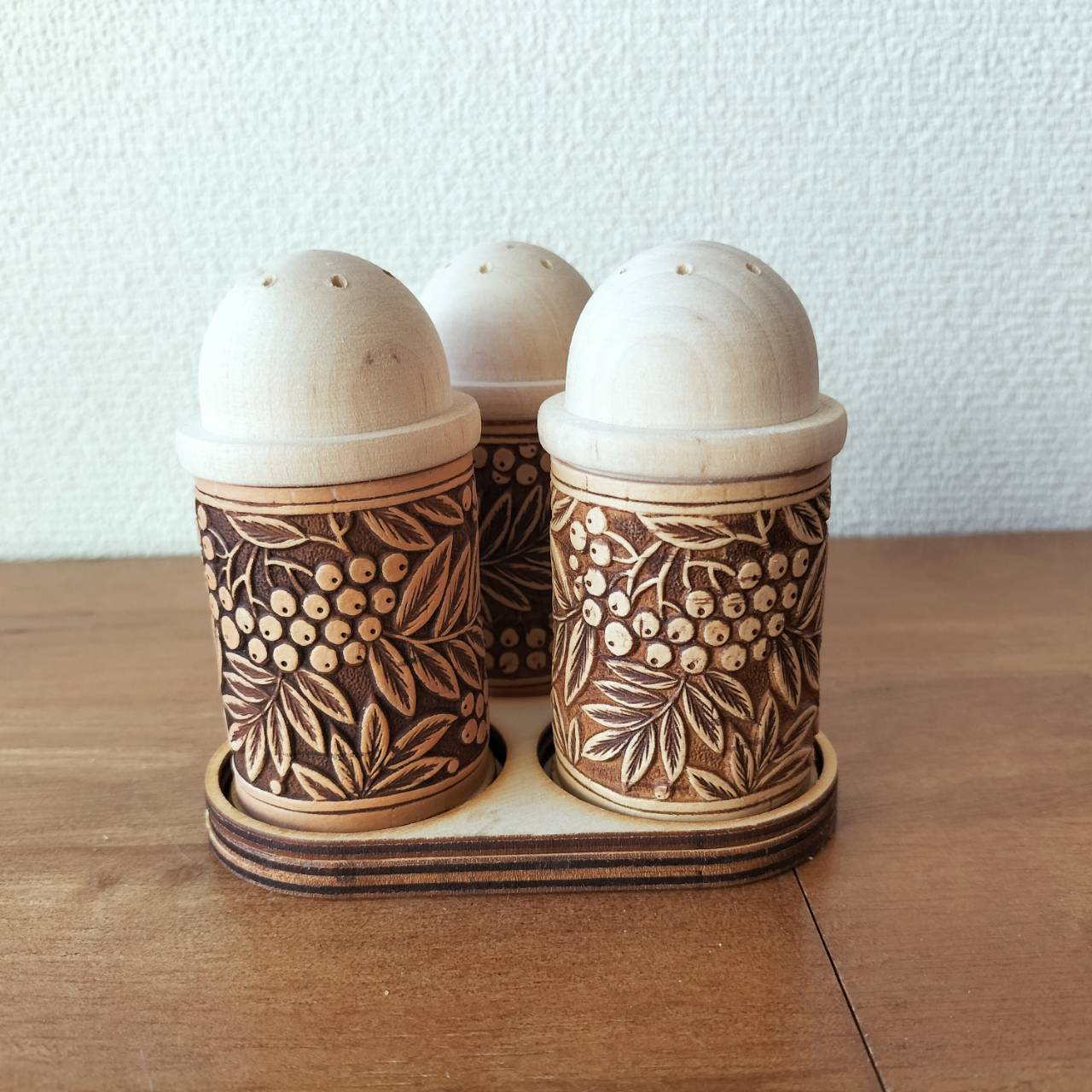 【BE165】北欧ロシア雑貨、ベレスタ・白樺の小物入れ【調味料入れ】