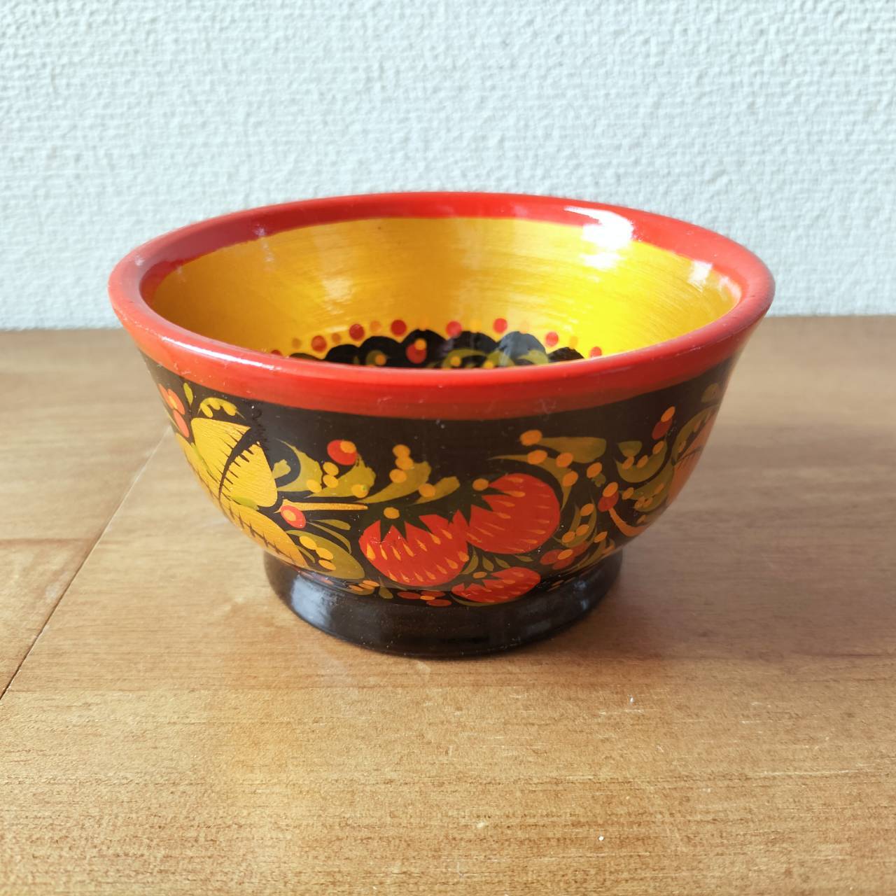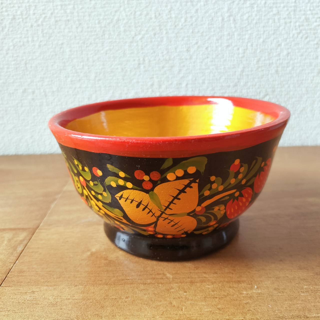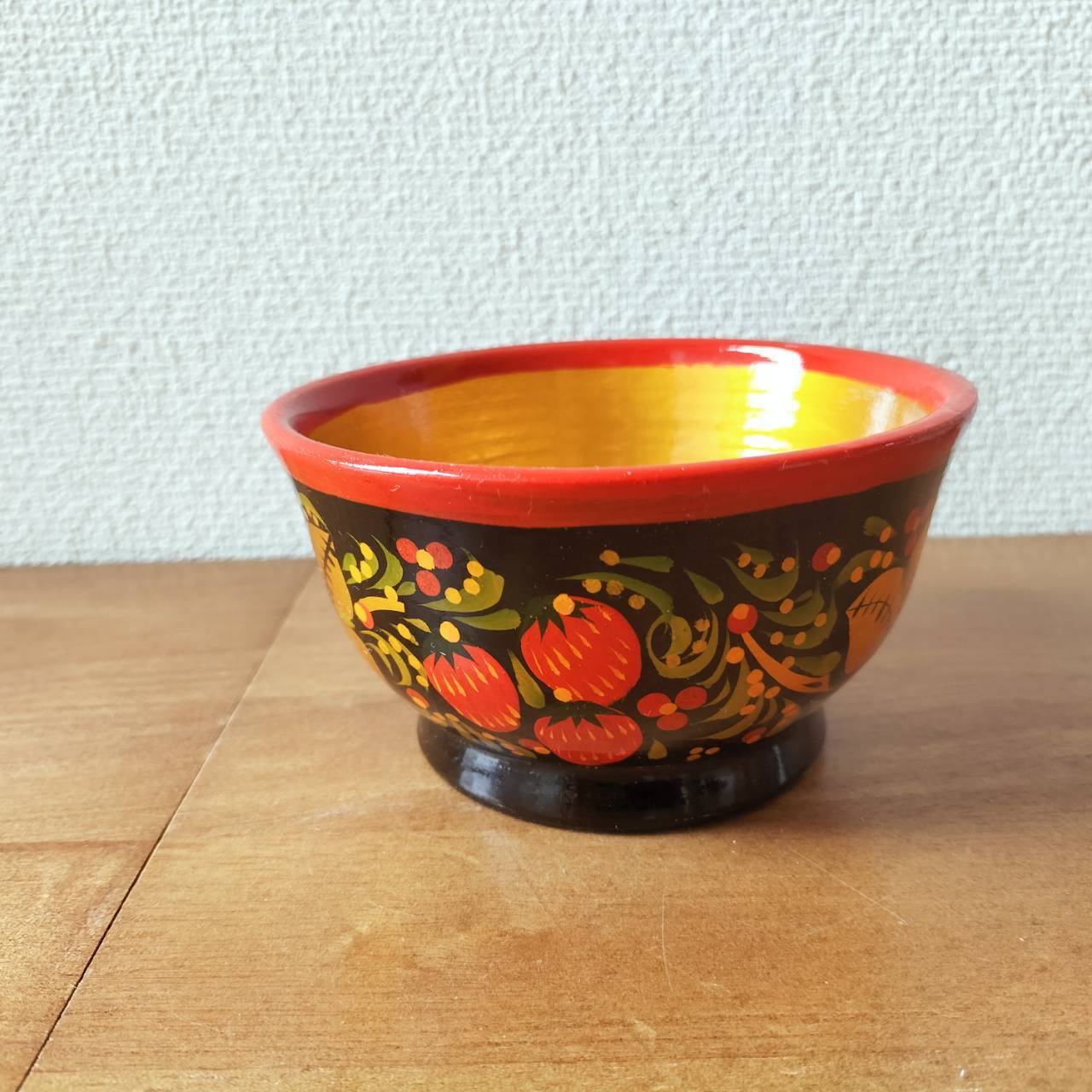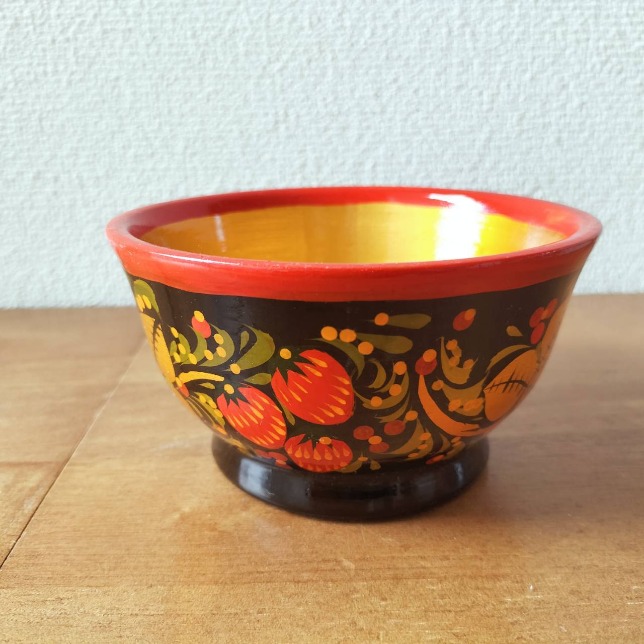 ロシアの主要な伝統工芸品であるホフロマ塗の小鉢、入れ物です。ホフロマ村という地域が発祥の民芸品です。