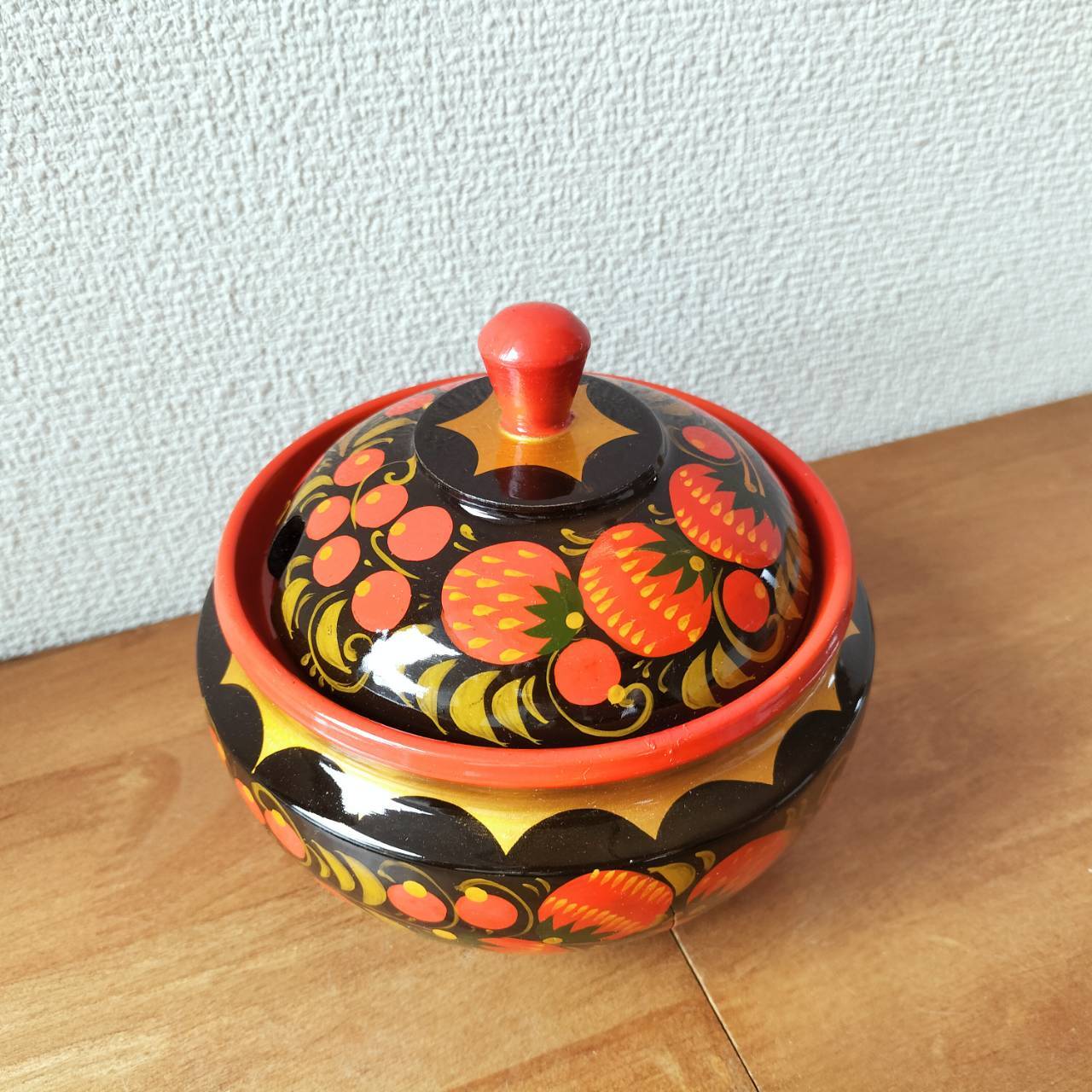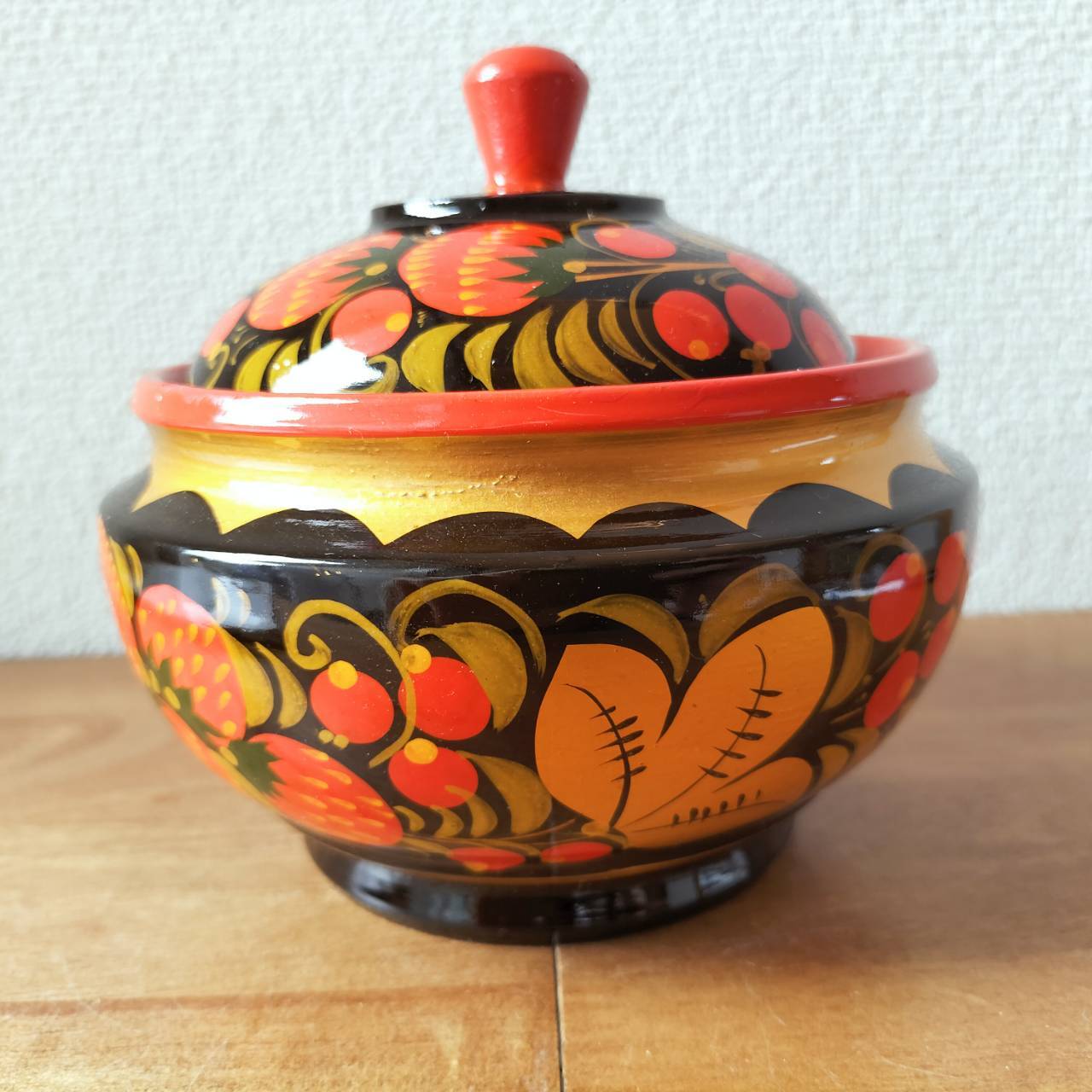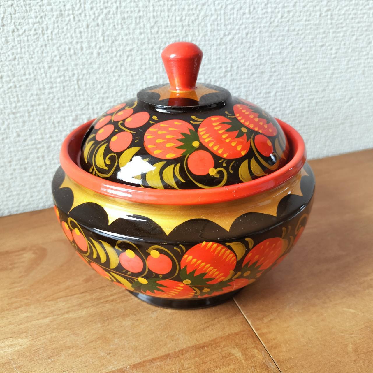 ロシアの主要な伝統工芸品であるホフロマ塗の小鉢、入れ物です。ホフロマ村という地域が発祥の民芸品です。