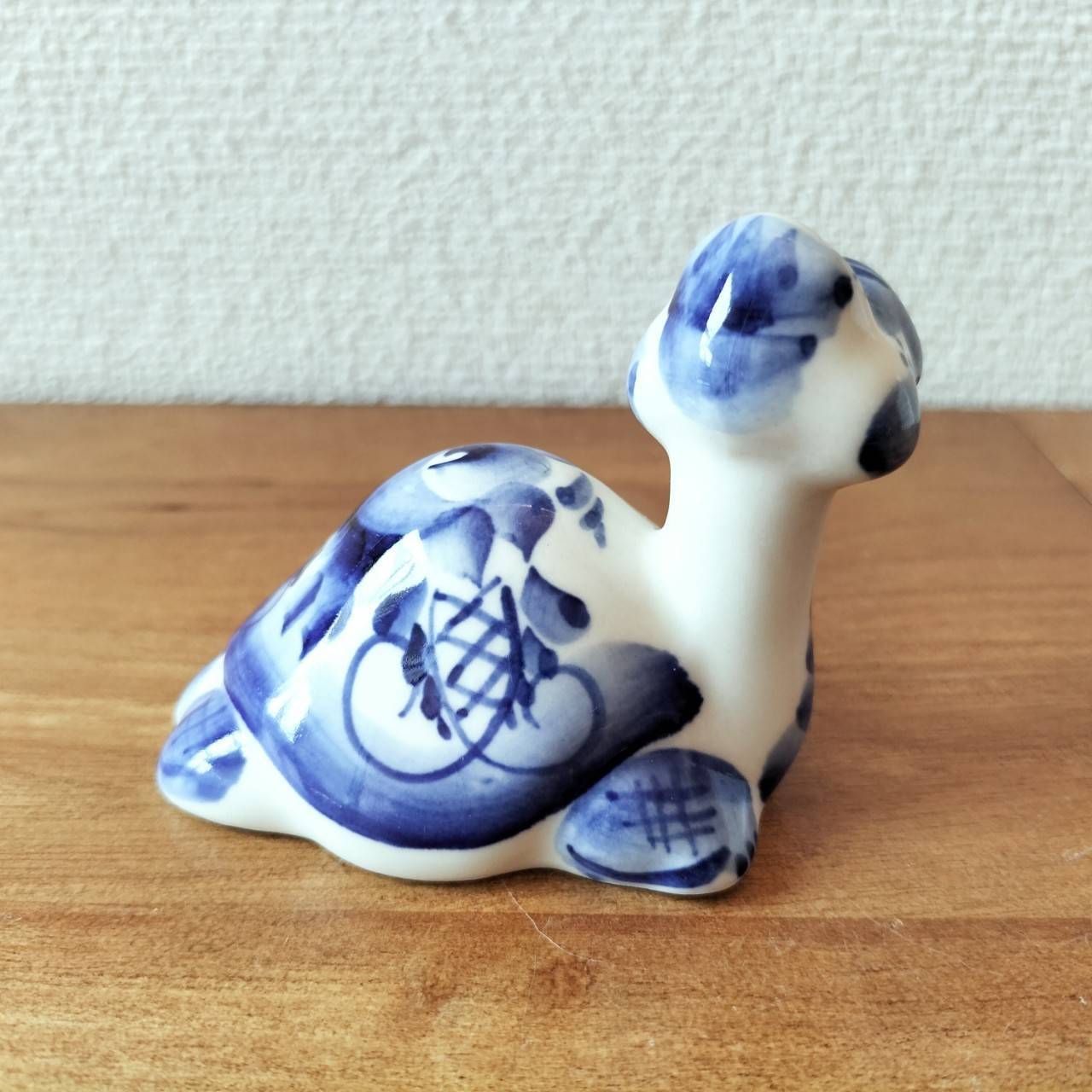 【GZ232】北欧ロシア雑貨 動物陶器 グジェリ焼 【亀 カメ】