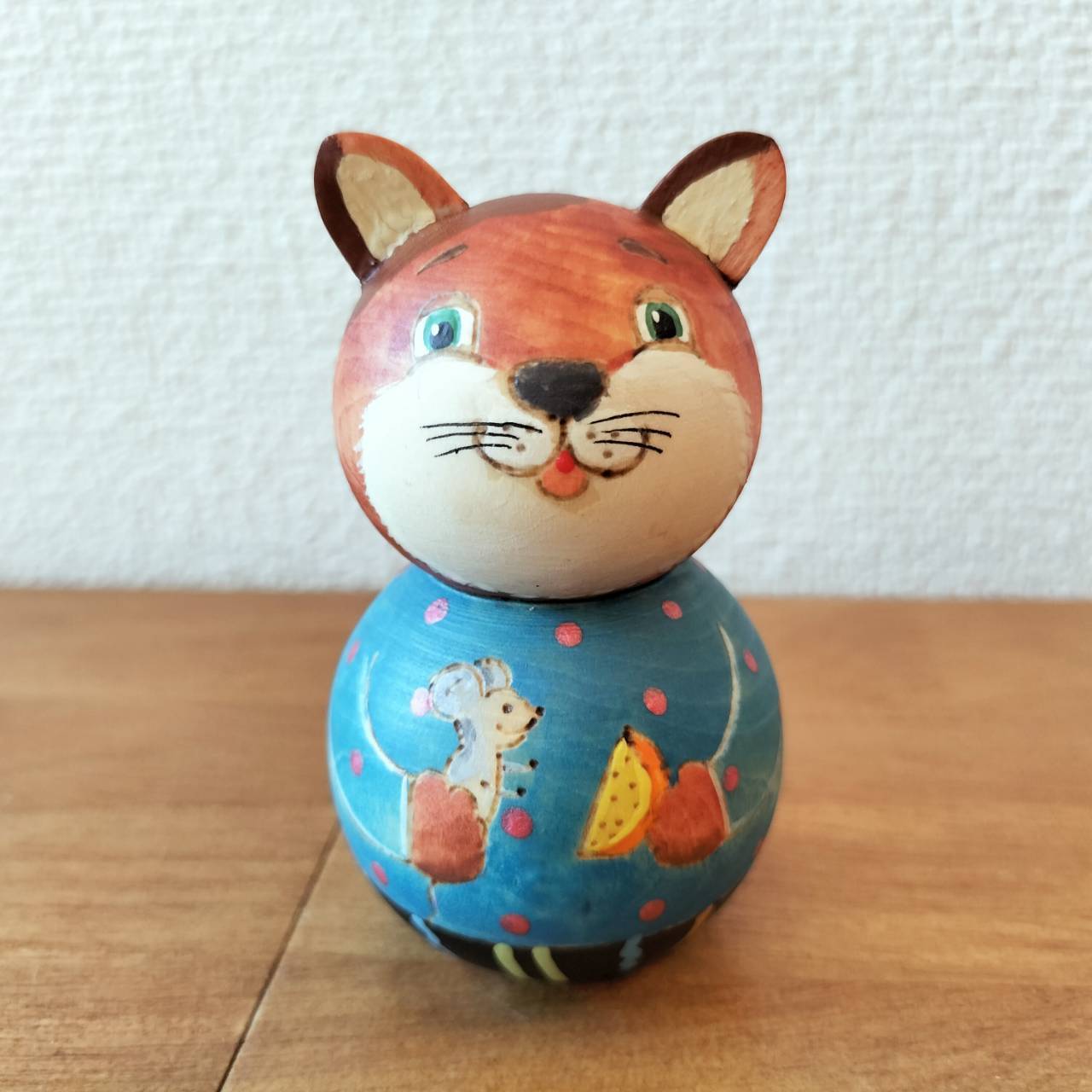 【LYH070】 北欧ロシア雑貨、木製人形【猫とネズミ】リューバ作