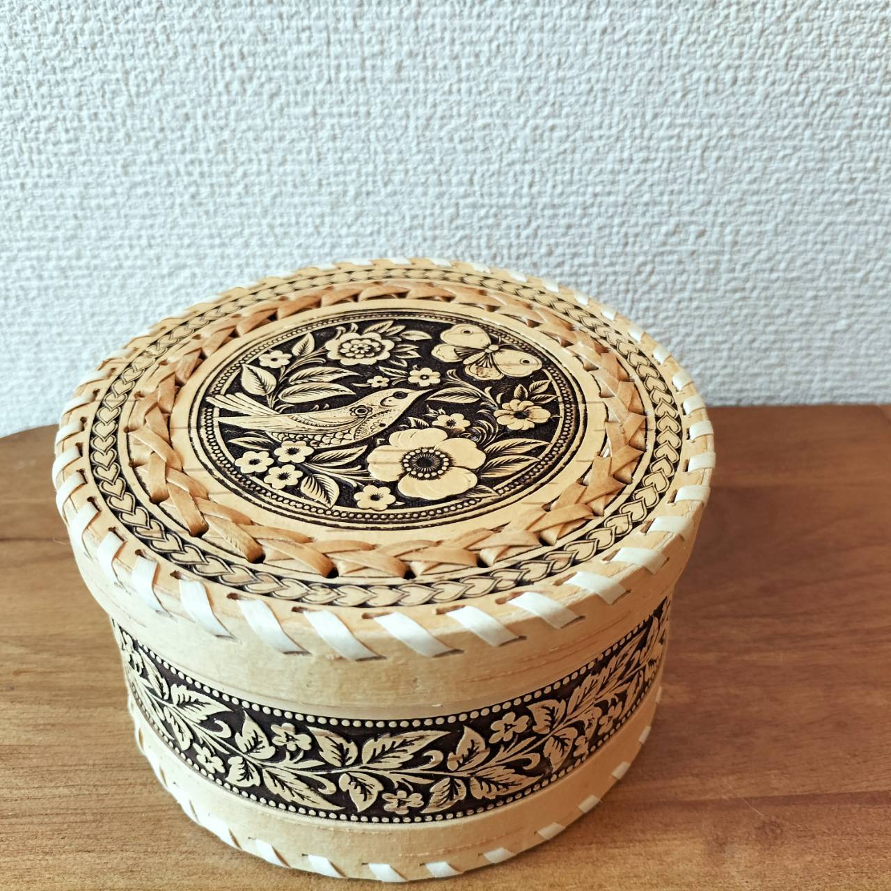 【BE069】北欧ロシア雑貨、ベレスタ・白樺の小物入れ【原野】