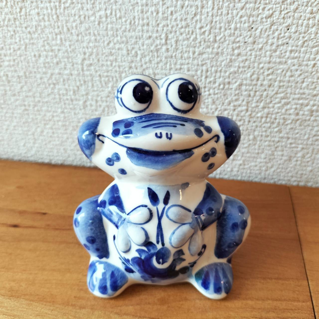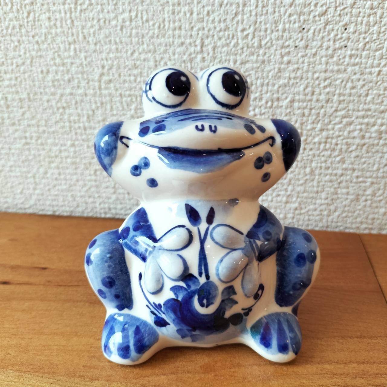 【GZ243】北欧ロシア雑貨 動物陶器 グジェリ焼 【カエル】