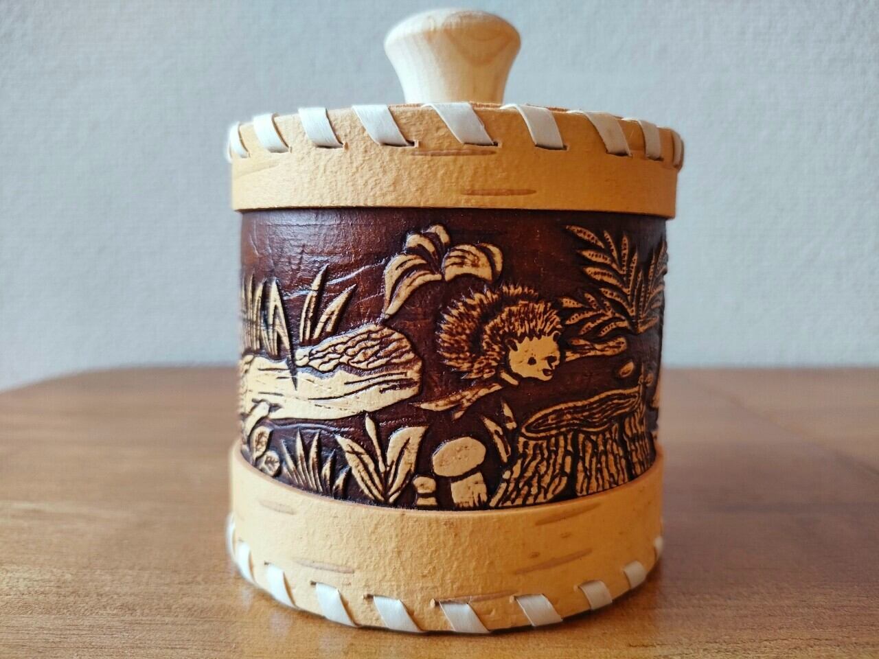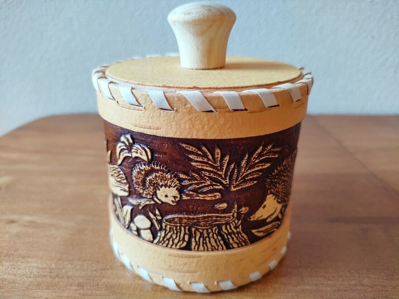 【BE179】北欧ロシア雑貨、ベレスタ白樺の小物入れ・キャニスター【ハリネズミ】