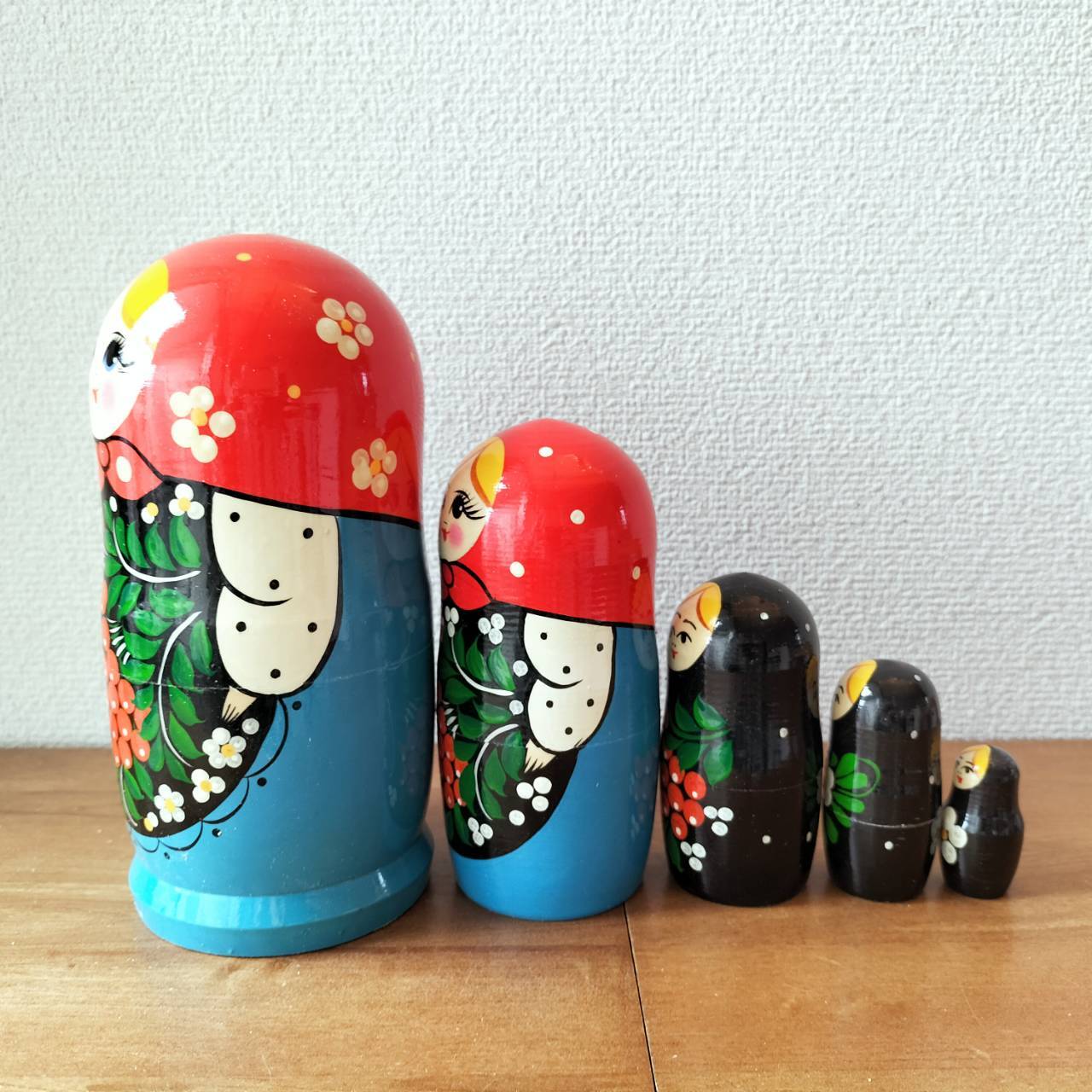 ロシア農村伝統の色彩豊かな原色系べた塗りのカラフルな木製民芸品、マトリョーシカです。自然木の香りがします