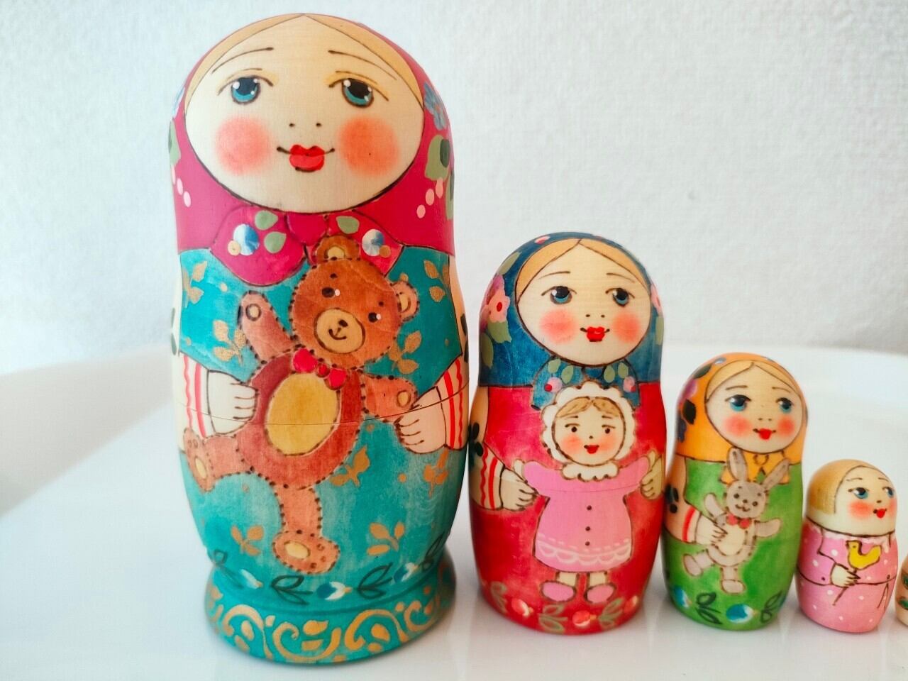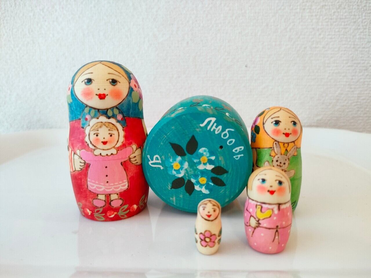 リュボーフィさんの母親のナジェージダ・イワンツォワさんは人生のすべてをマトリョーシカに捧げている大作家さんです。マトリョーシカの描画技術の伝道のため19歳で南米に渡り、その後は世界中の美術館やコレクション博物館などで彼女の作品は展示され始め、認知されました。ロシア・マトリョーシカ誕生の初期の頃の伝統的なデザインを守るスタイルで、この才能と技術は娘のリュボーフィ・ブズィキナさんに継承され、世界中で人気を博しています。贋作も多く、注意が呼びかけられています。