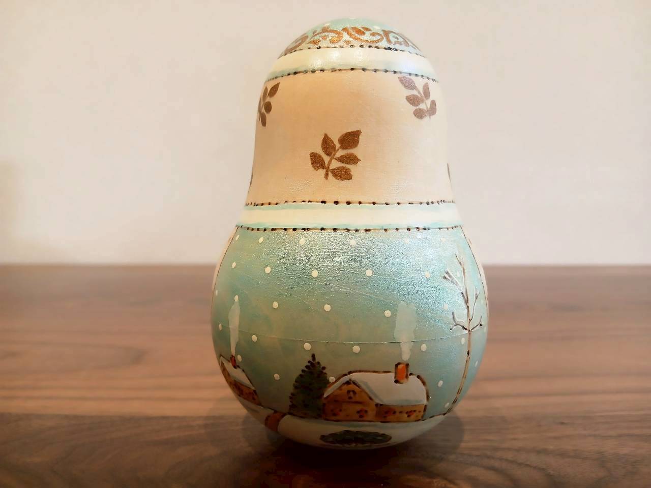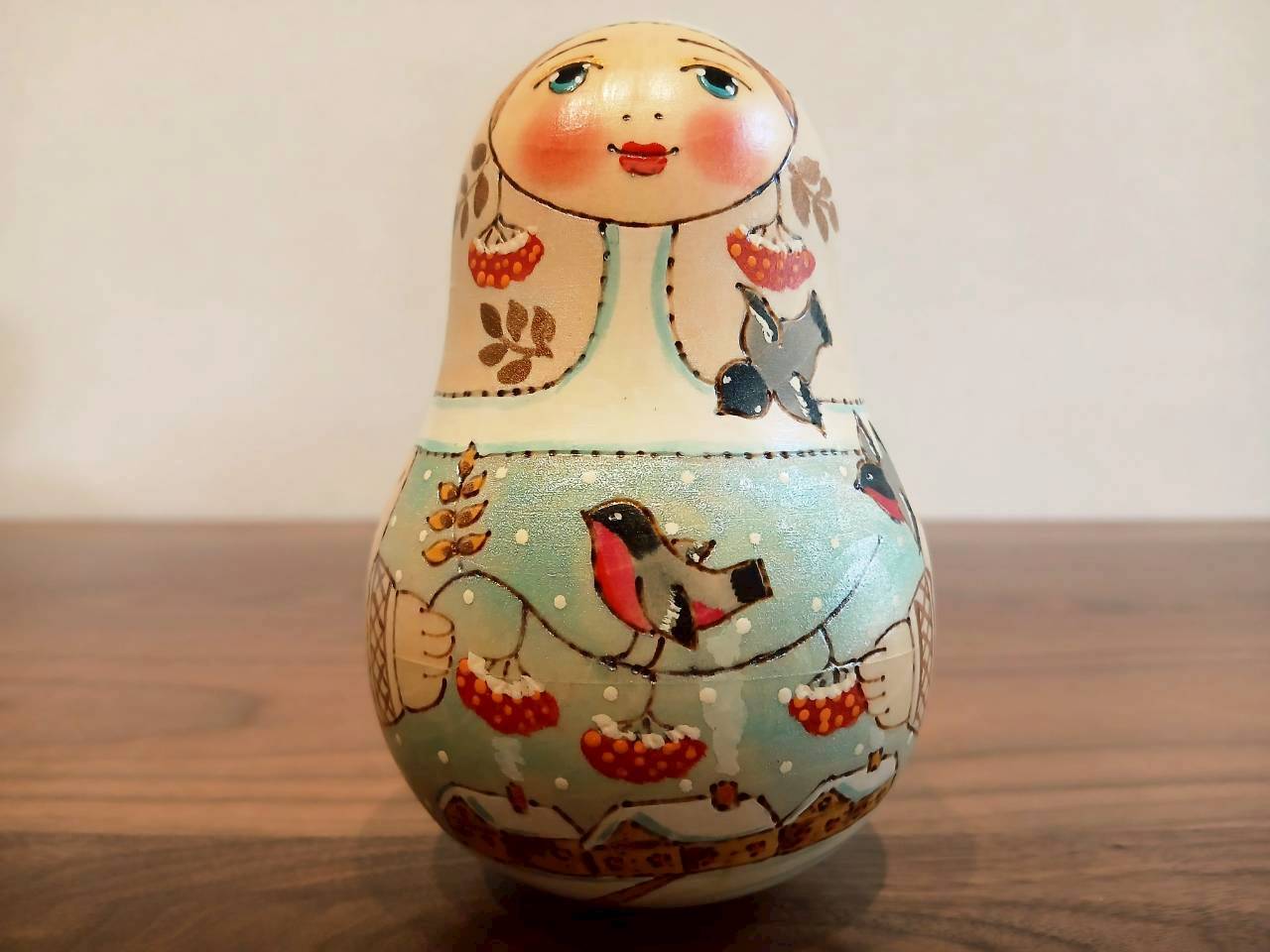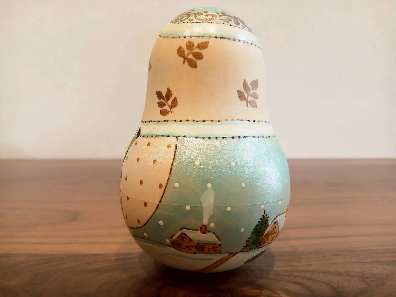 【LYH077】北欧ロシア雑貨 起き上がりこぼし (大) ロシアの冬景色 リューバ作