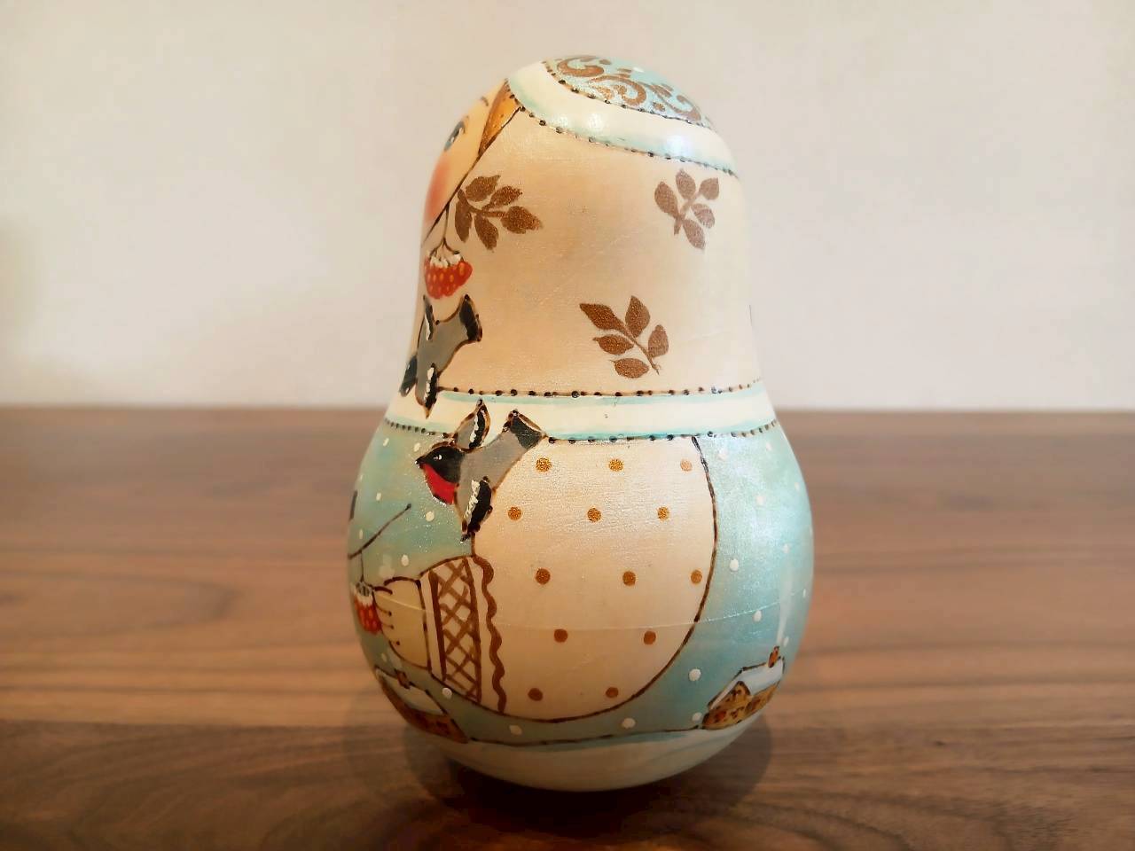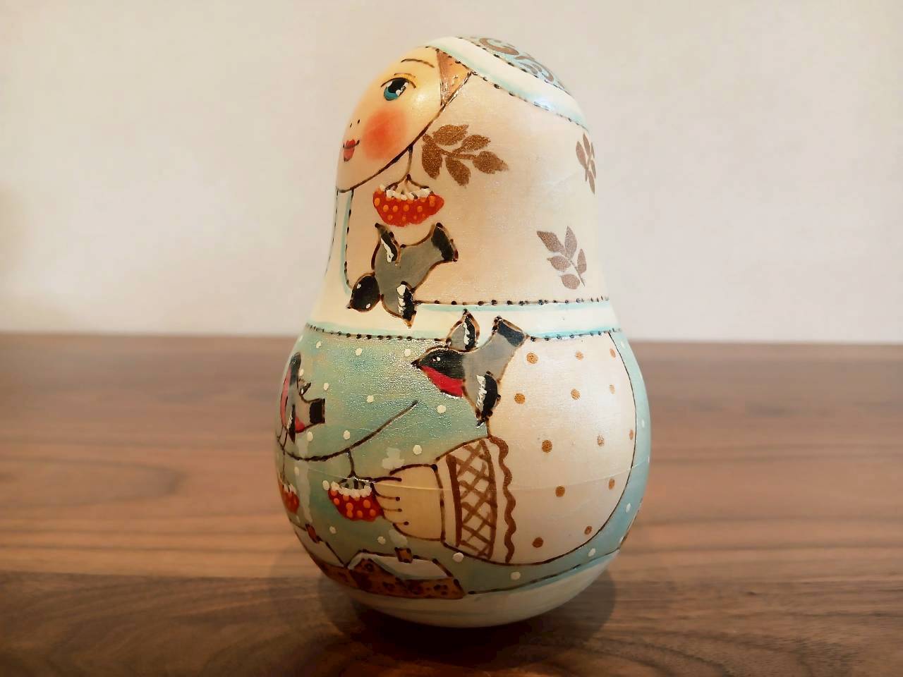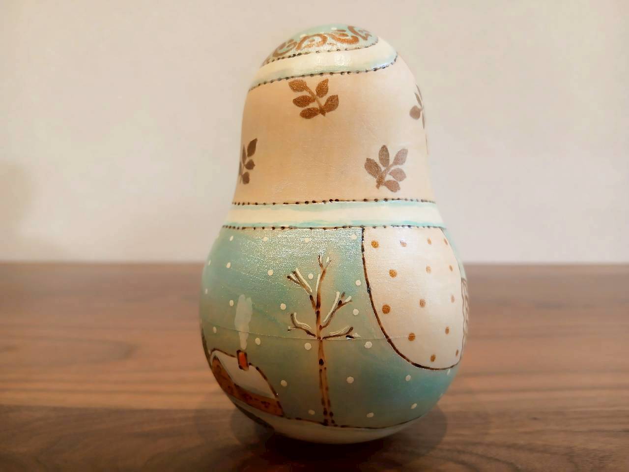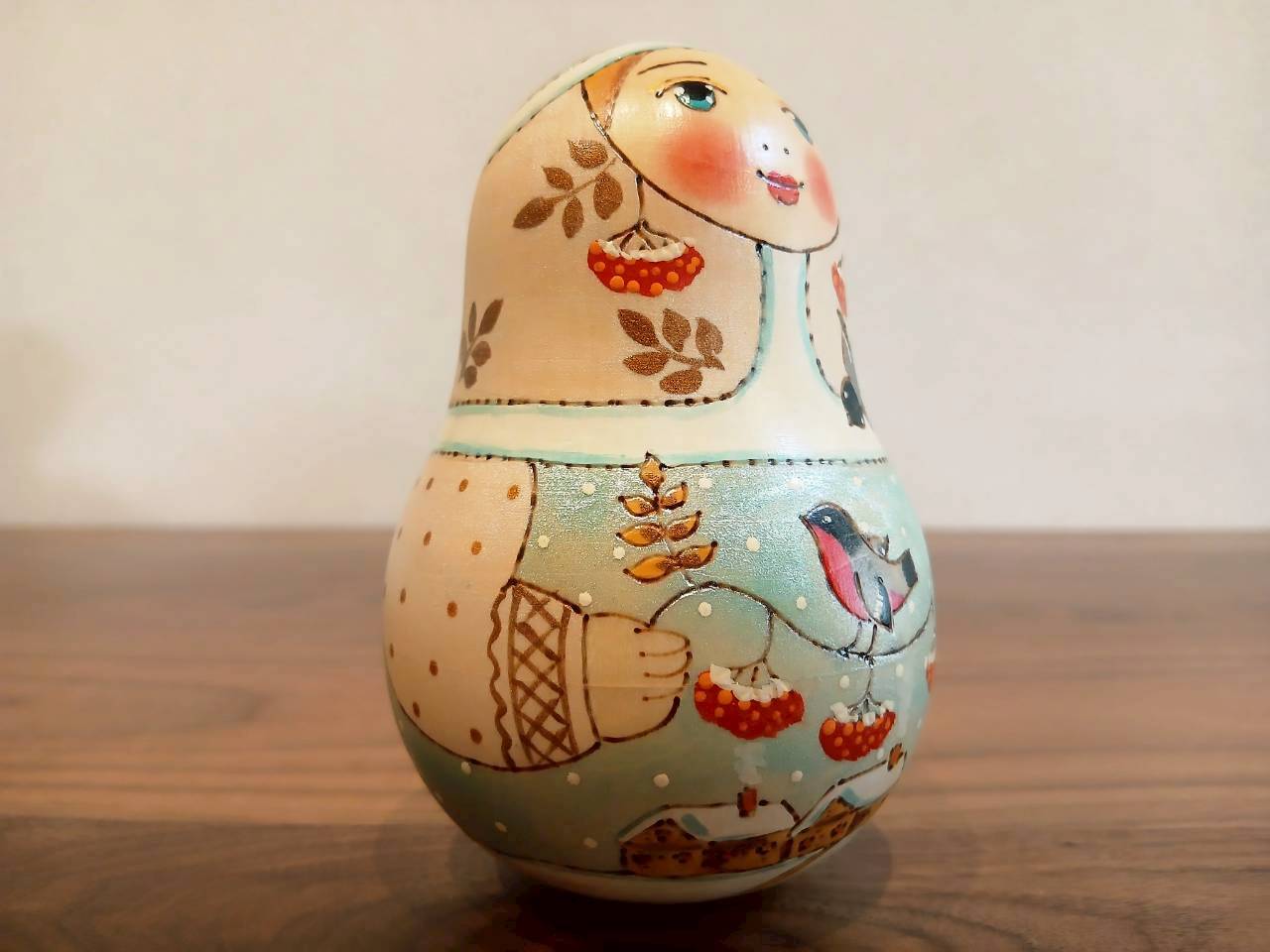 【LYH077】北欧ロシア雑貨 起き上がりこぼし (大) ロシアの冬景色 リューバ作