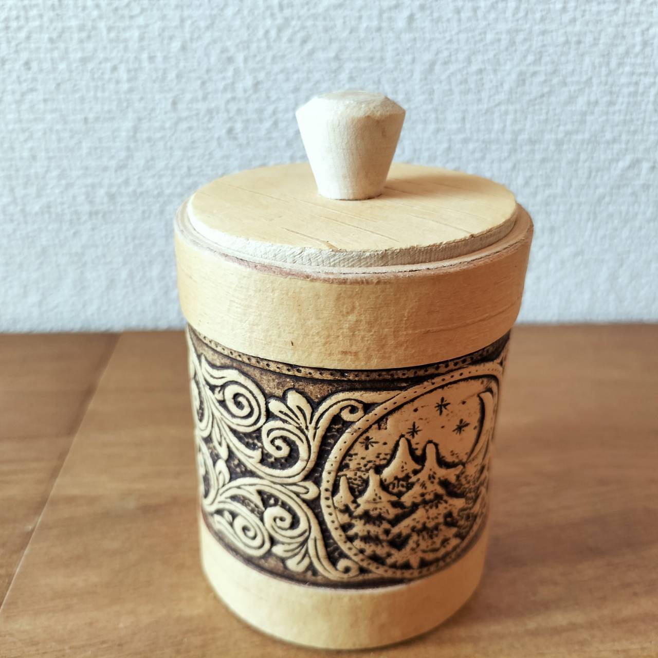 【BE139】北欧ロシア雑貨、ベレスタ白樺の小物入れ・キャニスター【月夜の森】