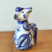 【GZ248】北欧ロシア雑貨 動物陶器 グジェリ焼 【ビジネスのネズミ】