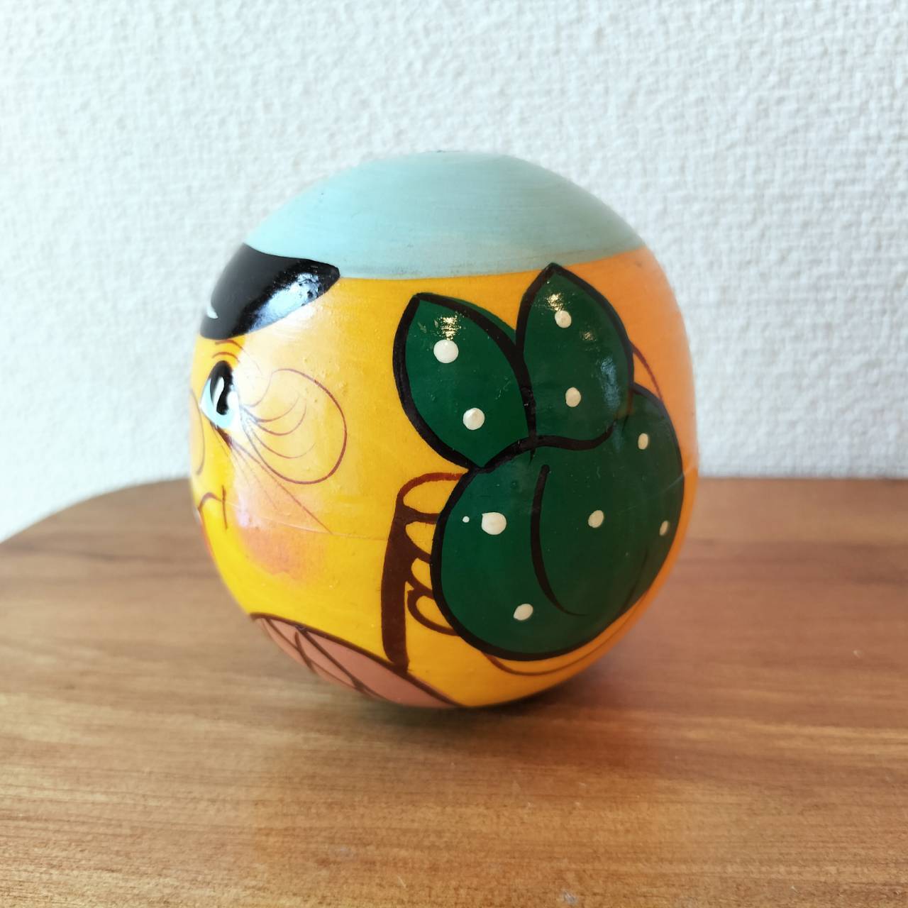 ロシア民話の「おだんごパン」をモチーフにしたロシアの職人さんによるハンドメイドの起き上がりこぼしです。揺らすと前後左右にカランコロンと鳴り、元の位置に戻ります。
