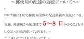 ●郵便局職員のコロナ感染拡大により、現在、発送から到着までに5日以上かかることがあっても珍しくない状況です。