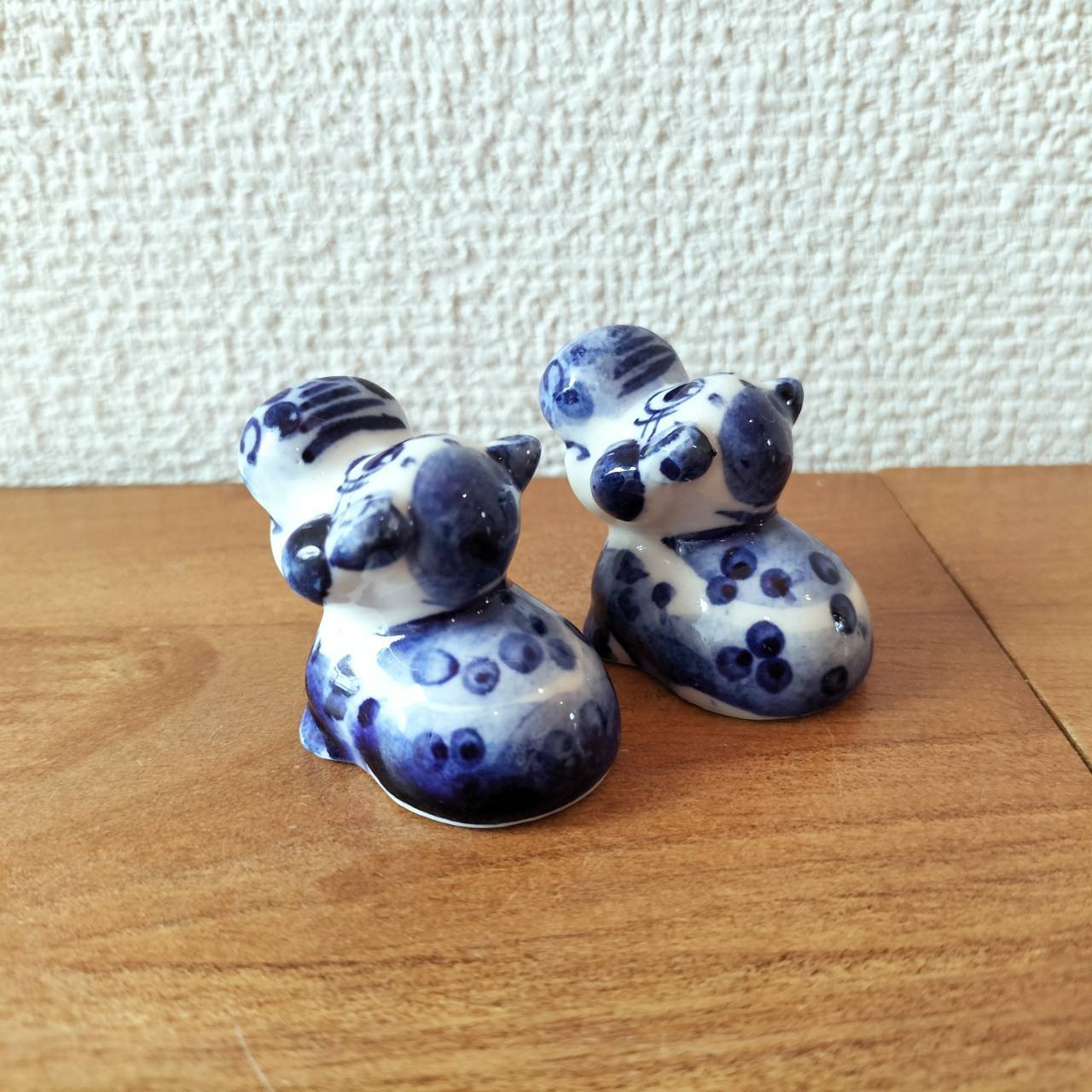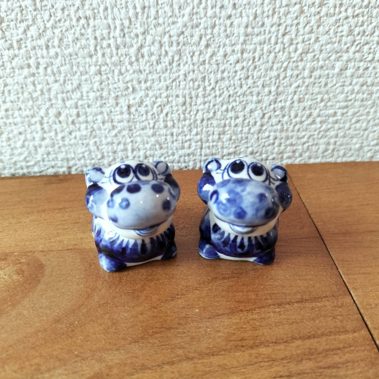【GZ250】北欧ロシア雑貨 動物陶器 グジェリ焼 【カバの兄弟2体セット】