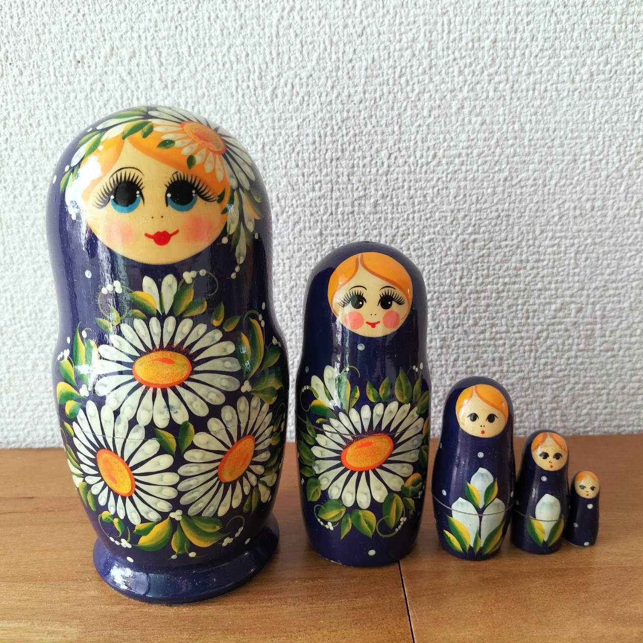 ロシア農村伝統の色彩豊かな原色系べた塗りのカラフルな木製民芸品、マトリョーシカです。自然木の香りがします
