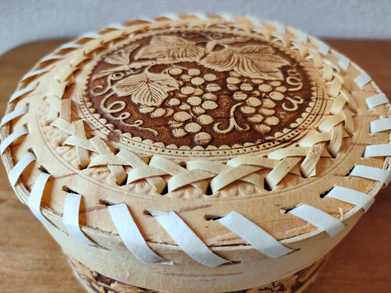 ロシア・北欧の小物入れ、ベレスタです。白樺の真皮で作られている白樺細工です。