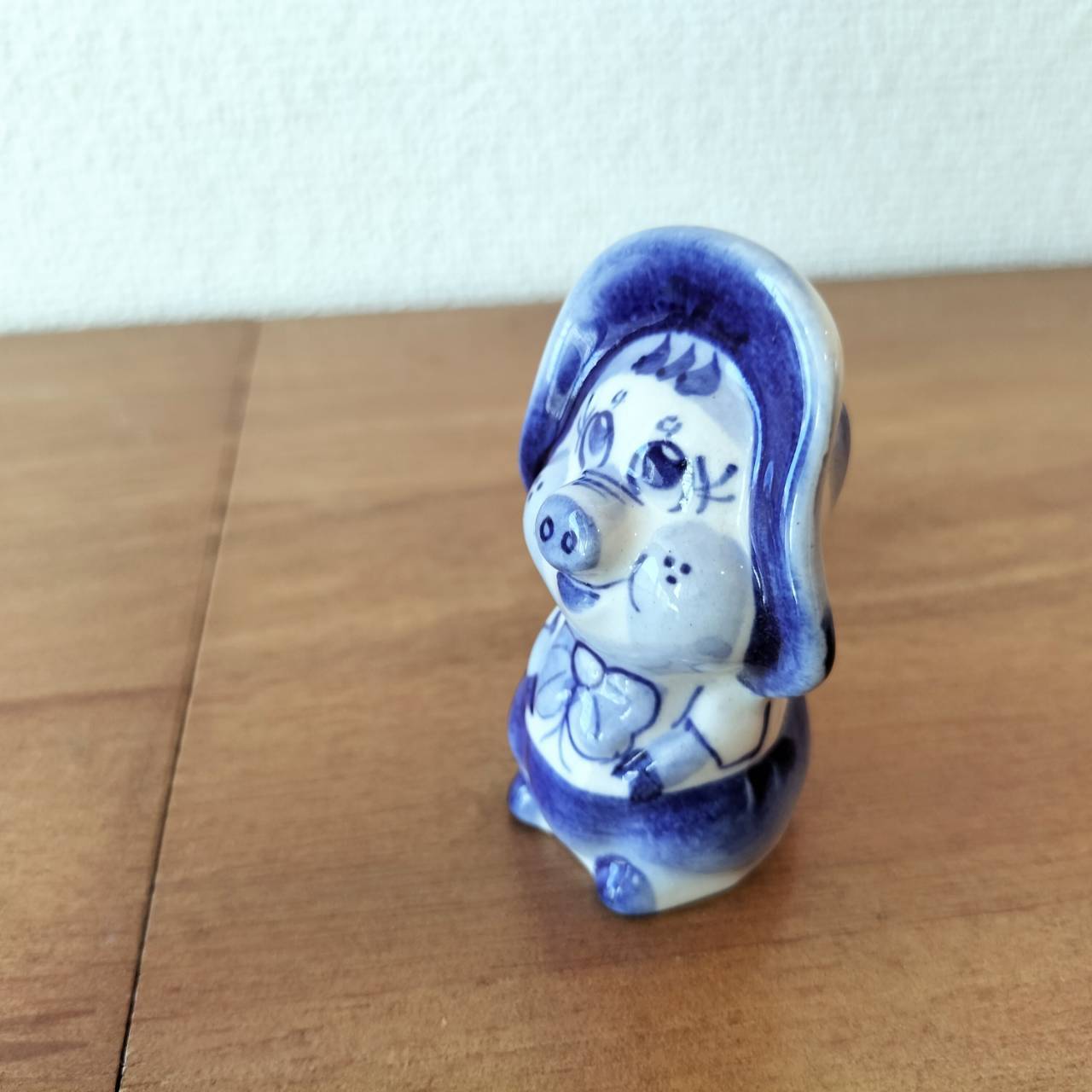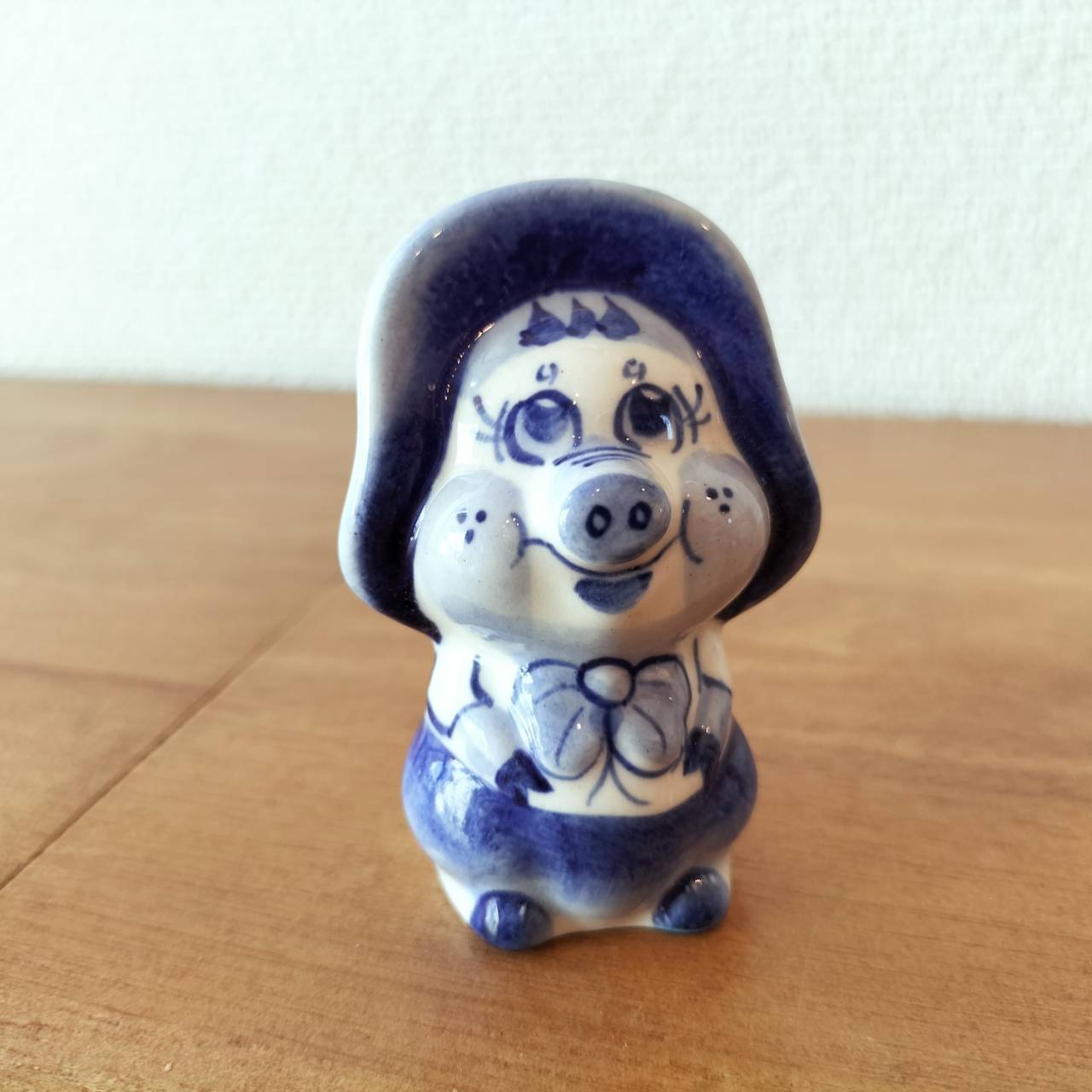 【GZ254】北欧ロシア雑貨 動物陶器 グジェリ焼 【こぶたちゃん】