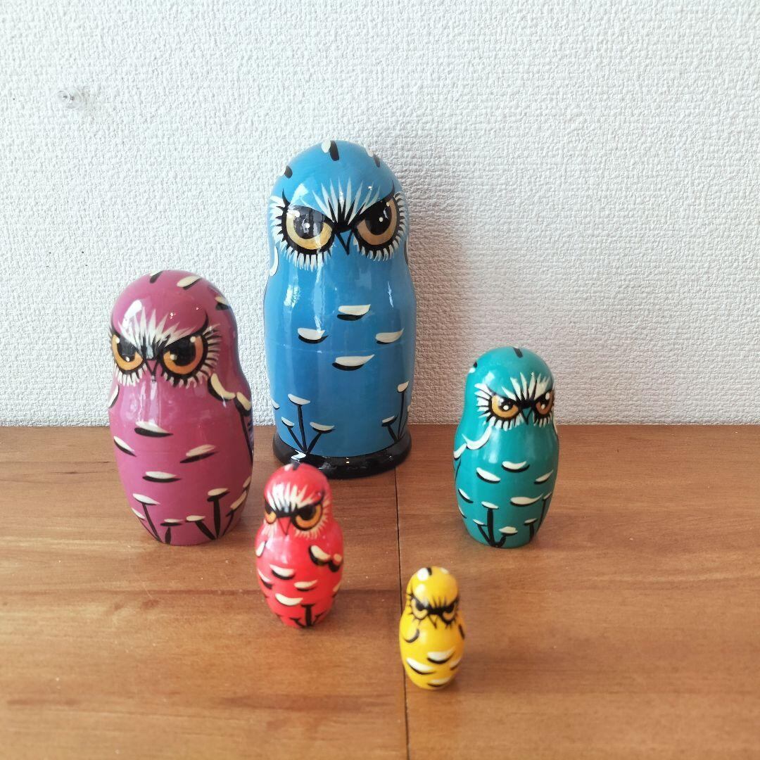 【MTP118】北欧ロシア雑貨のマトリョーシカ(中) 【ふくろう フクロウ】