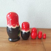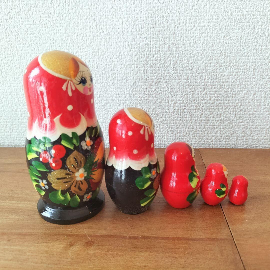 ロシア農村伝統の色彩豊かな原色系べた塗りのカラフルな木製民芸品、マトリョーシカです。自然木の香りがします。