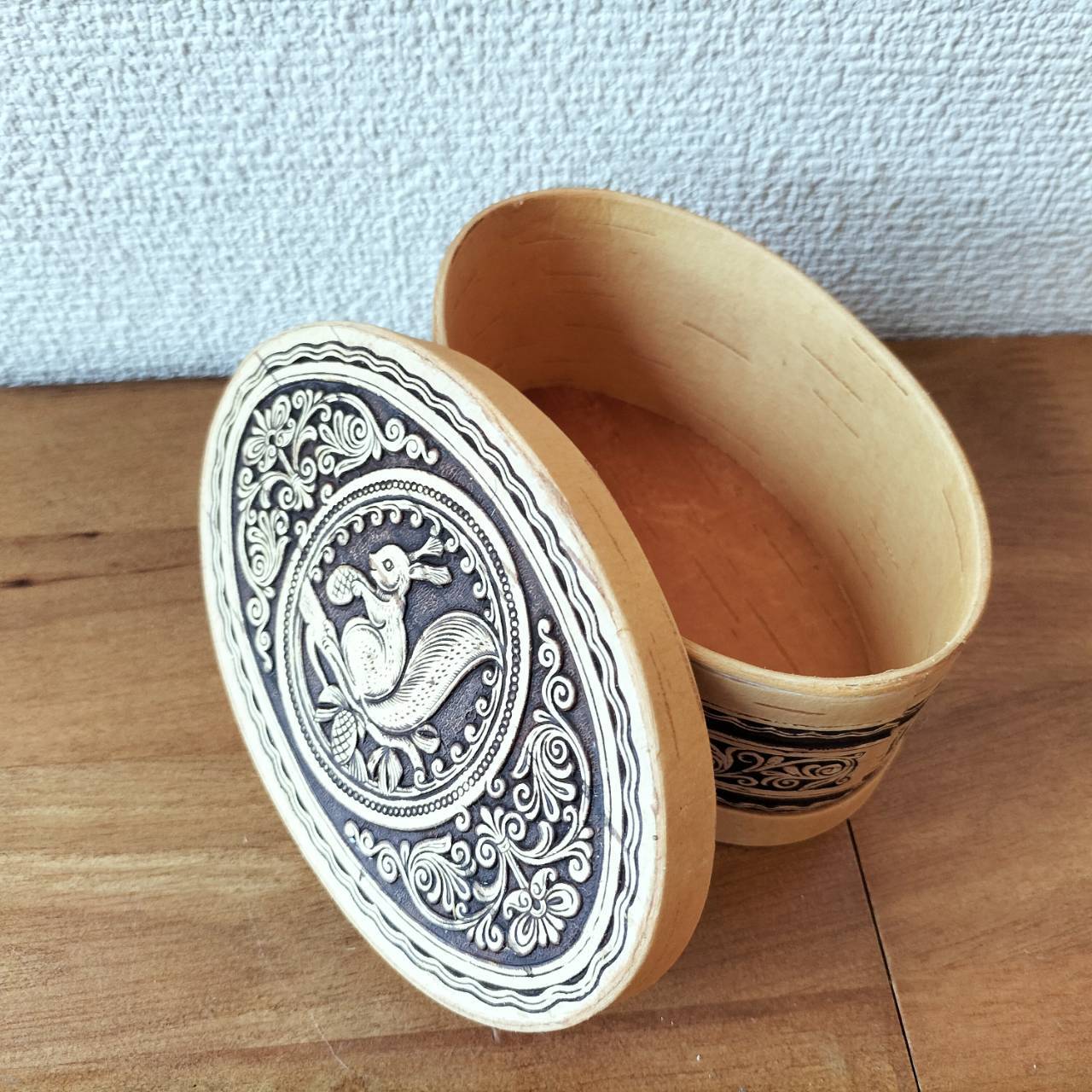 ロシア・北欧の小物入れ、ベレスタです。白樺の真皮で作られている白樺細工です。ベレスタ職人のハンドメイド作品です。