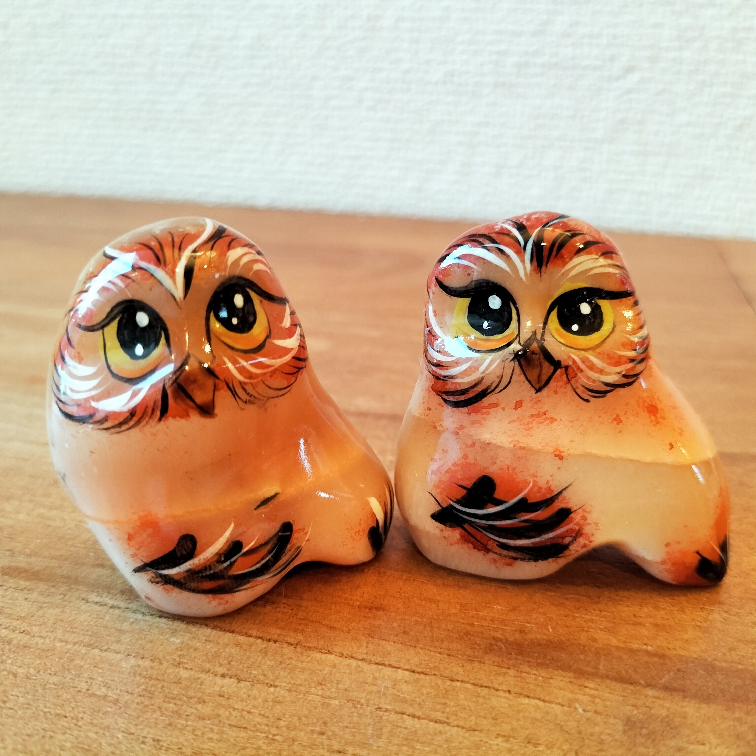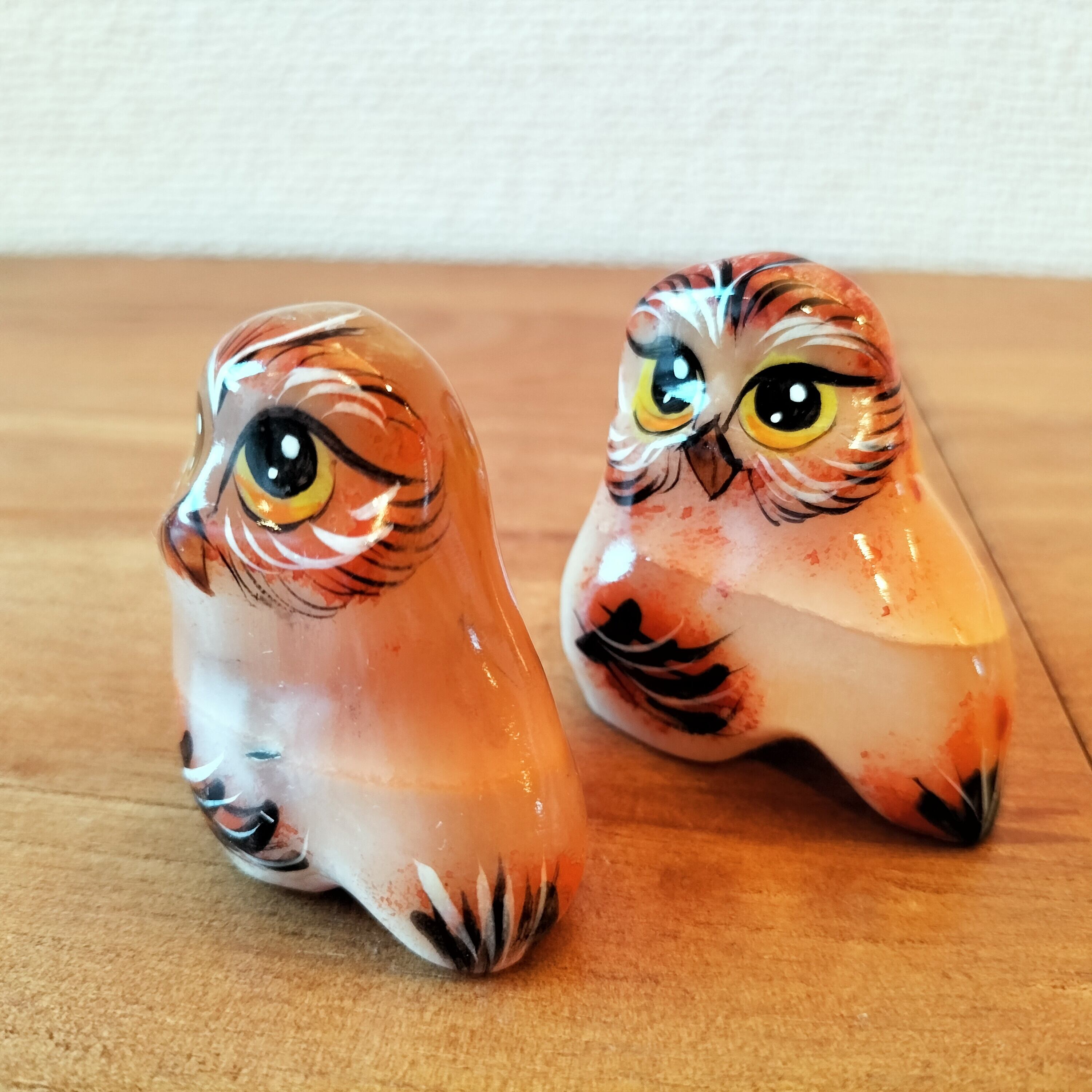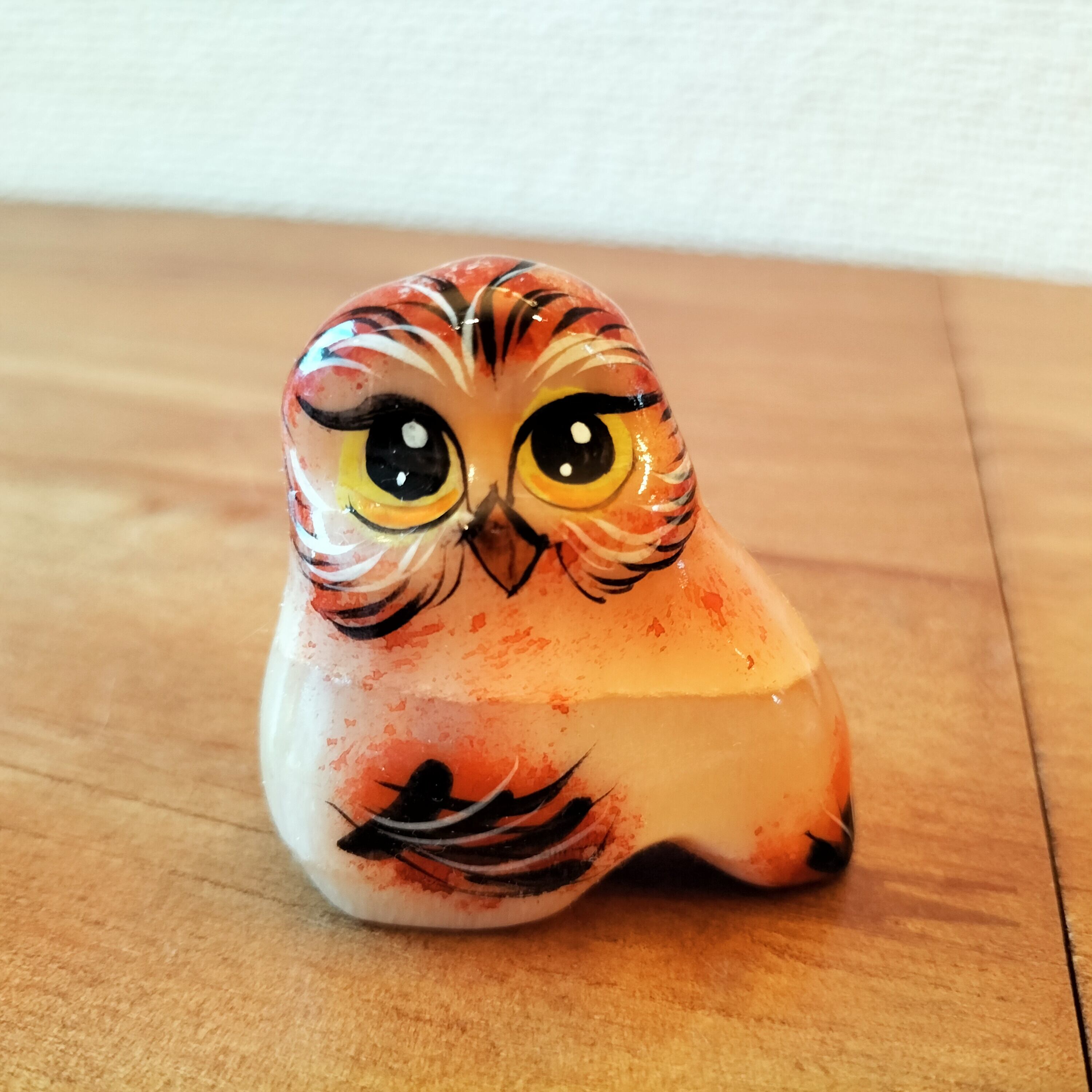 【CEL294】北欧ロシア雑貨天然石・セレナイト 水晶 冬の鳥:フクロウ