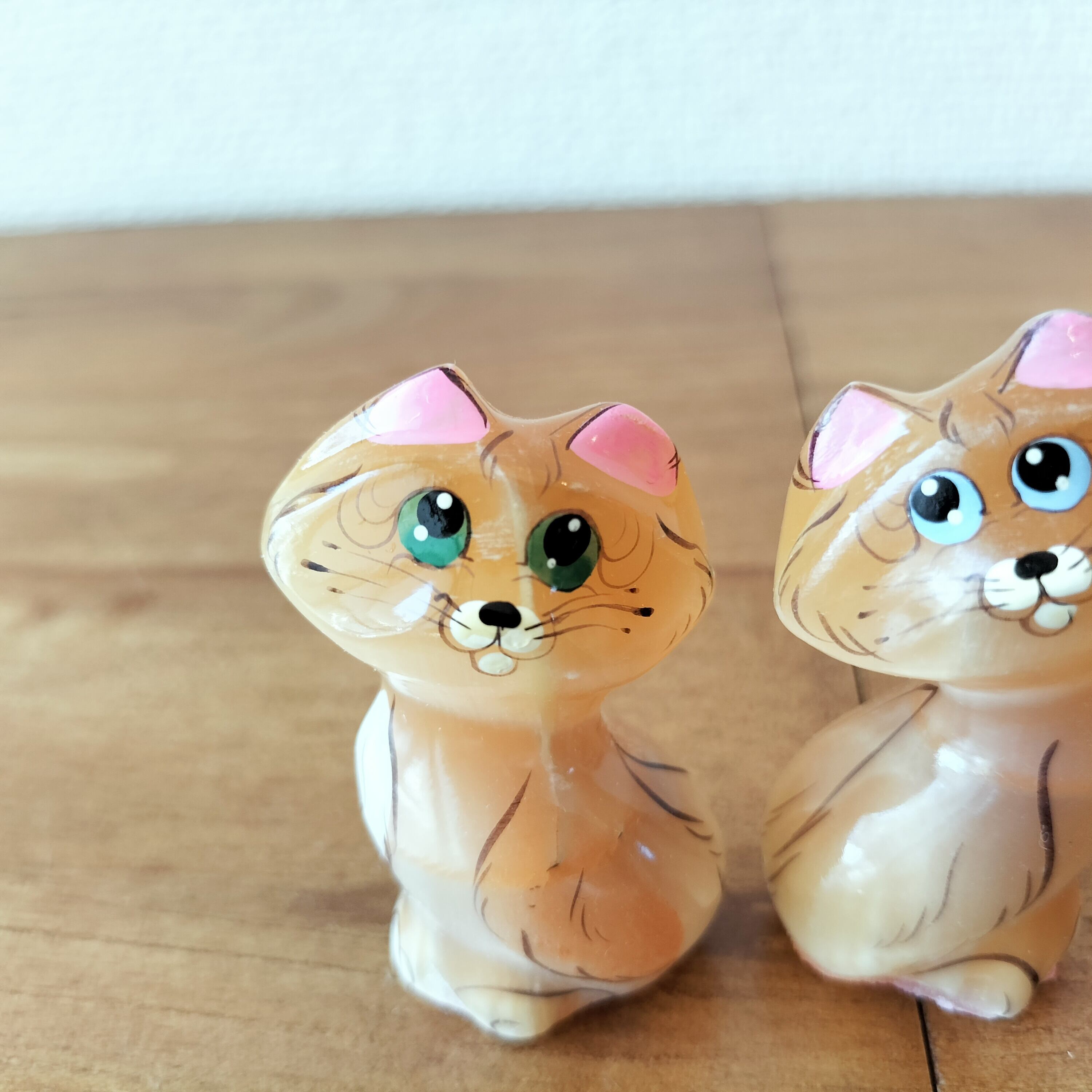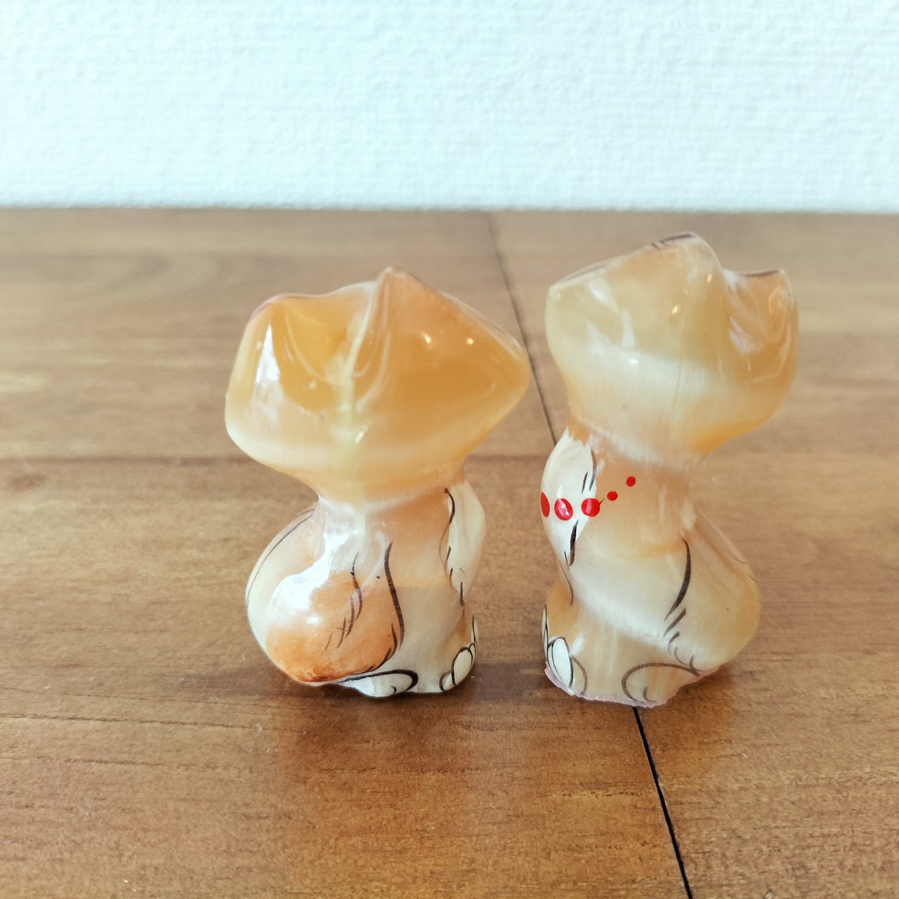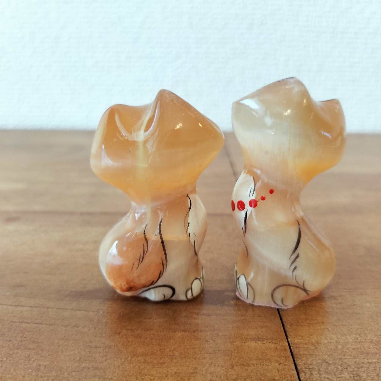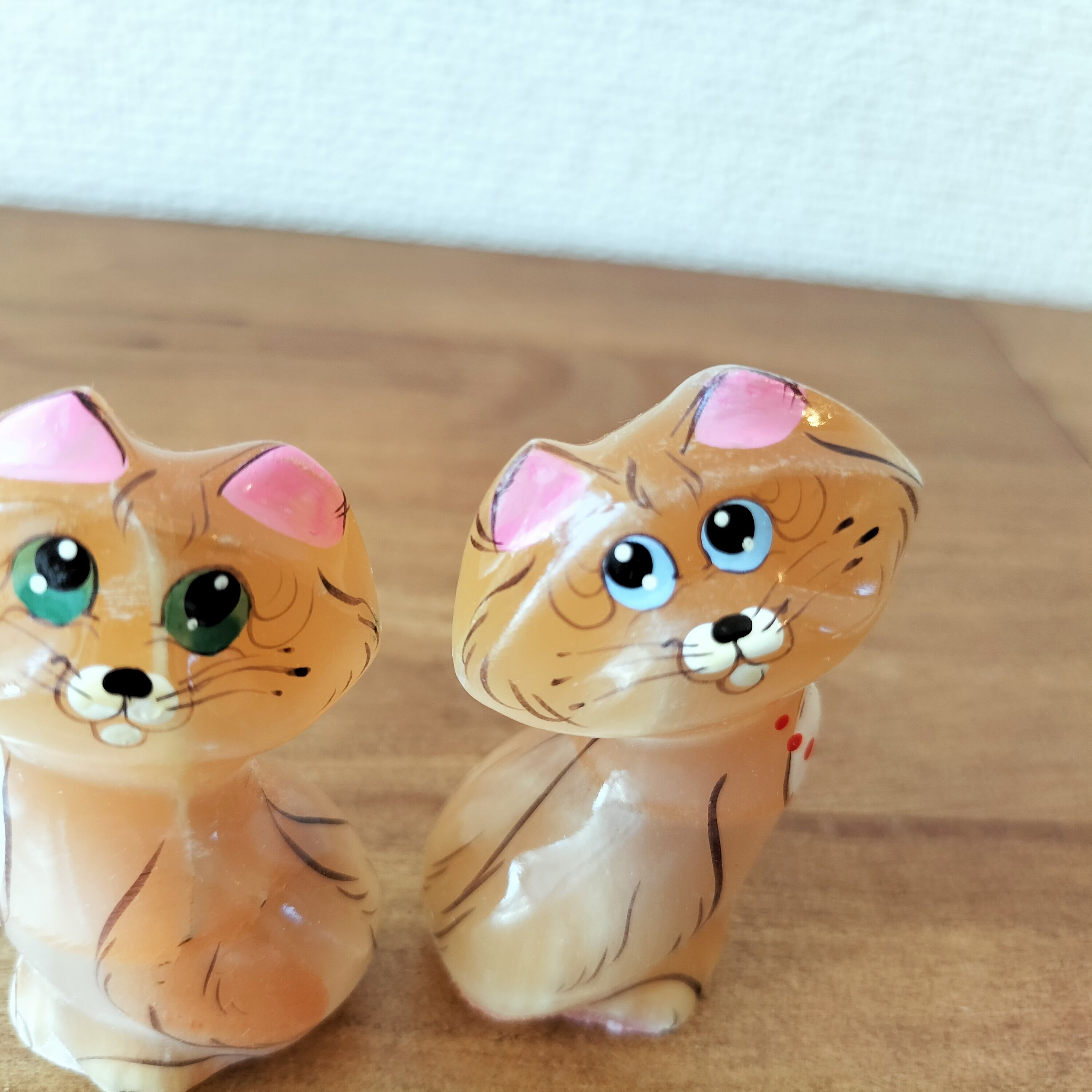 【CEL298】北欧ロシア雑貨天然石・セレナイト 水晶 仲良し猫兄弟