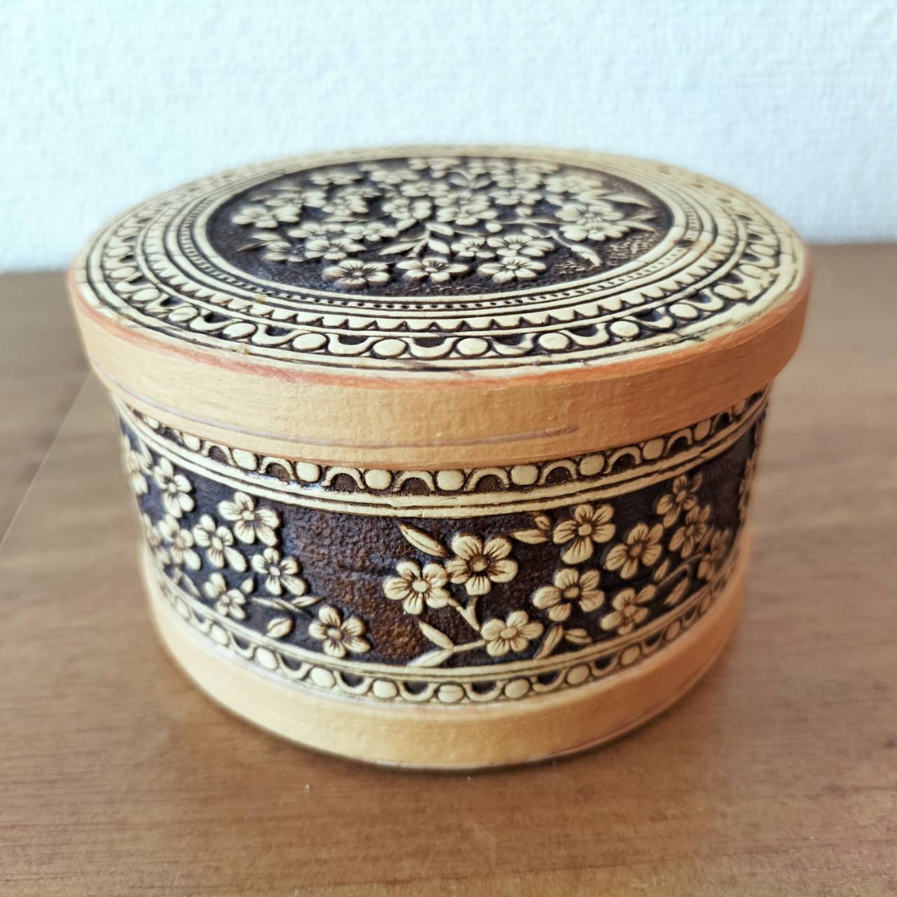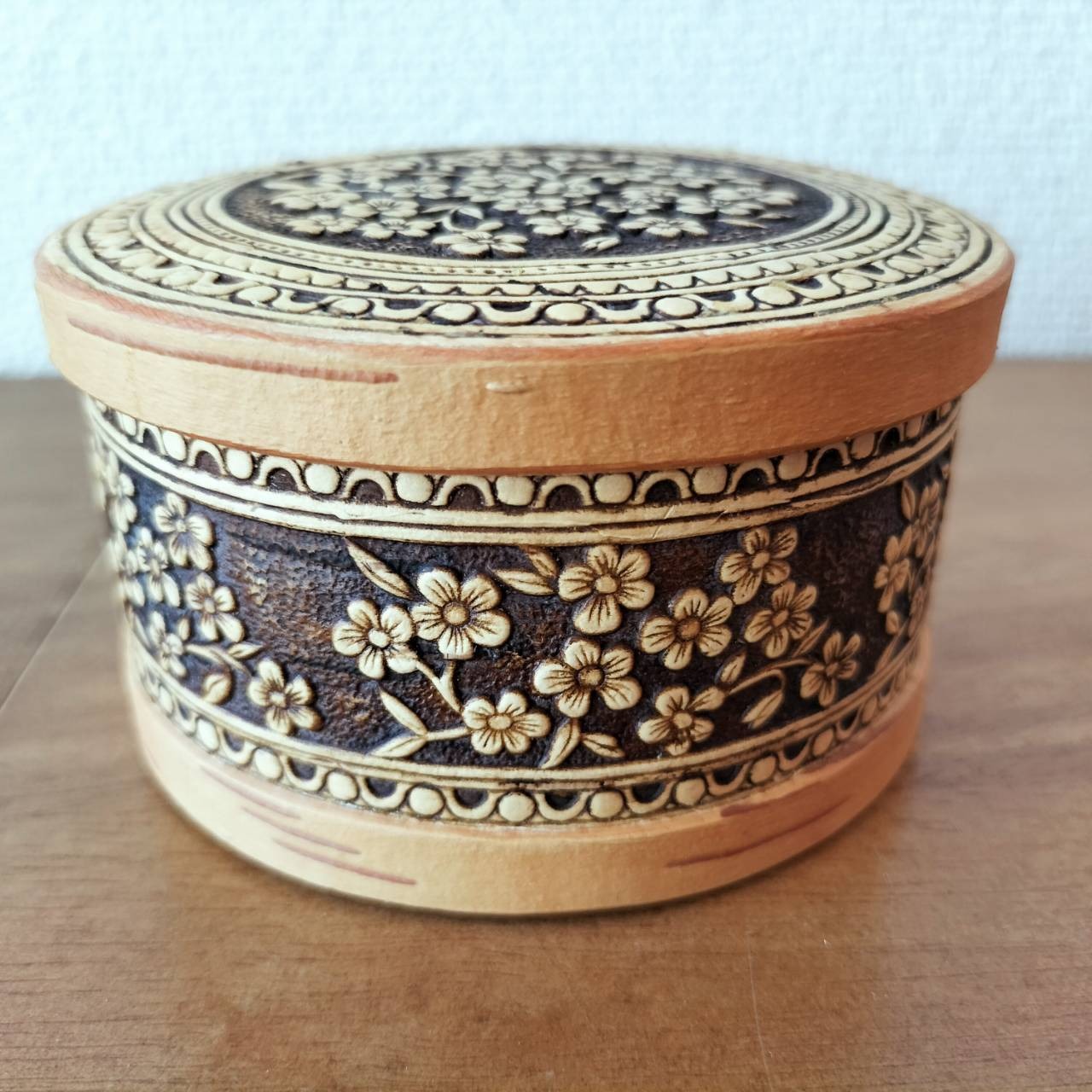 【BE220】北欧ロシア雑貨、ベレスタ・白樺の小物入れ 丸型 野花