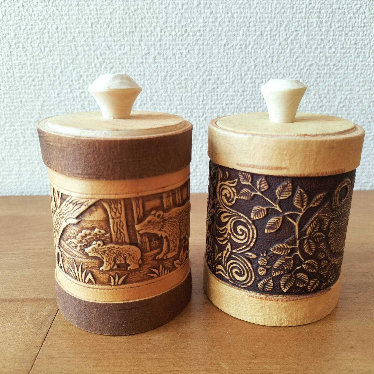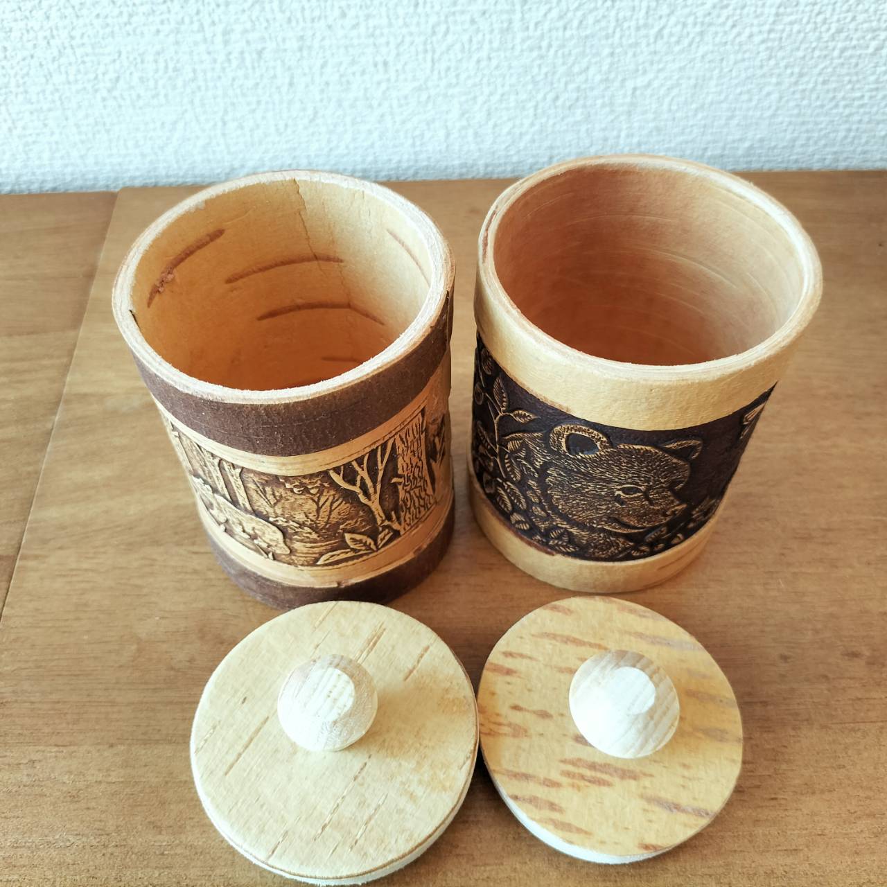 【BE223】北欧ロシア雑貨、ベレスタ・白樺の小物入れ キャニスター2個セット