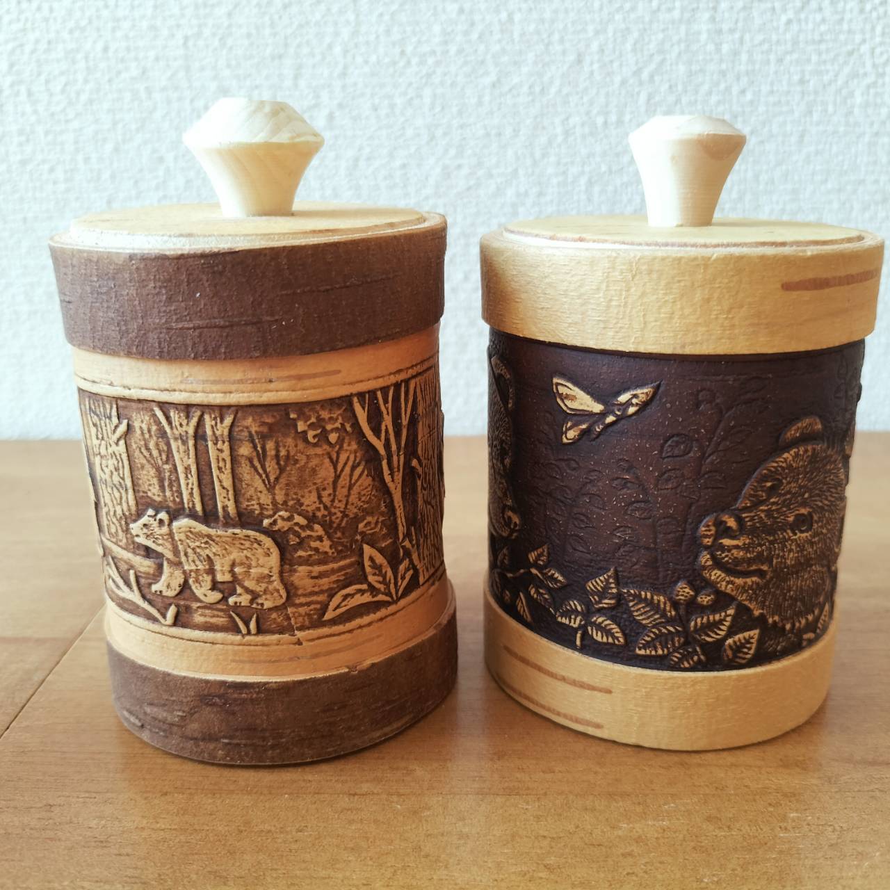 白樺は強い抗菌作用があるとされ、今でもロシアの農村に行くと、パンやキノコ、香辛料、塩砂糖などを入れる置物として活用されています。白樺のほのかな香りがします。