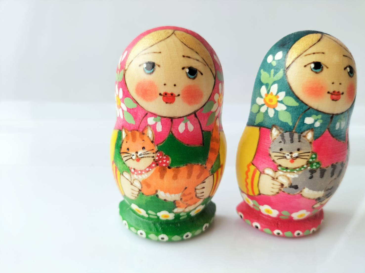 【LYH102】マトリョーシカのマグネット2個セット ねこ リューバ作