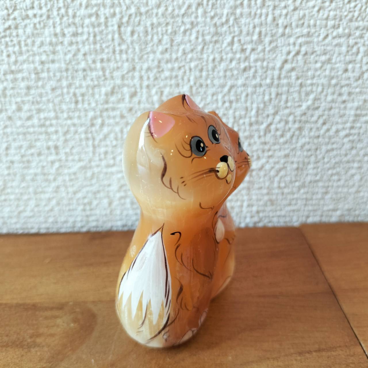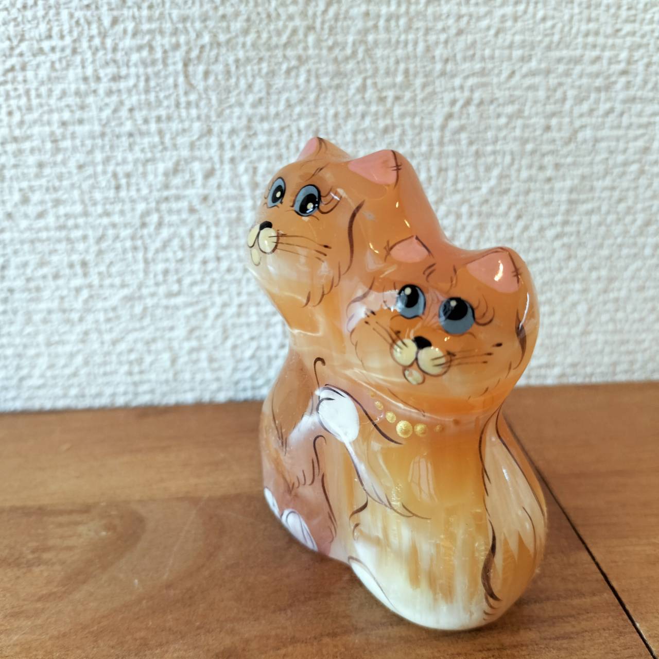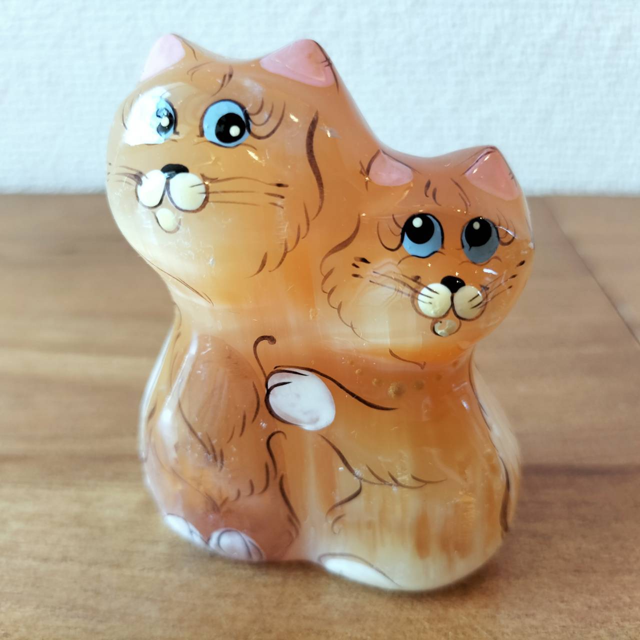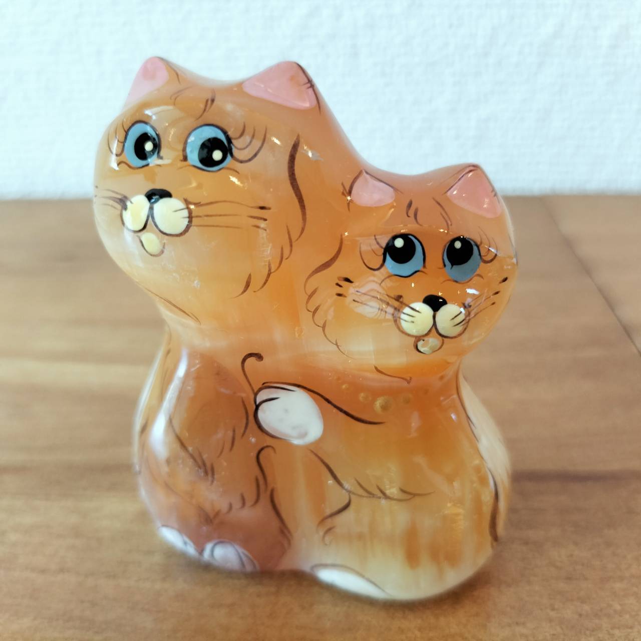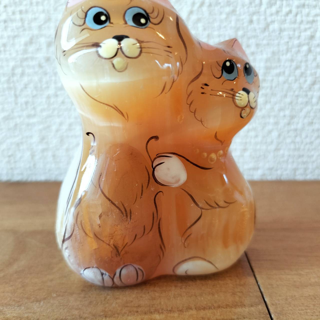 【CEL300】北欧ロシア雑貨天然石・セレナイト 水晶 猫の親子