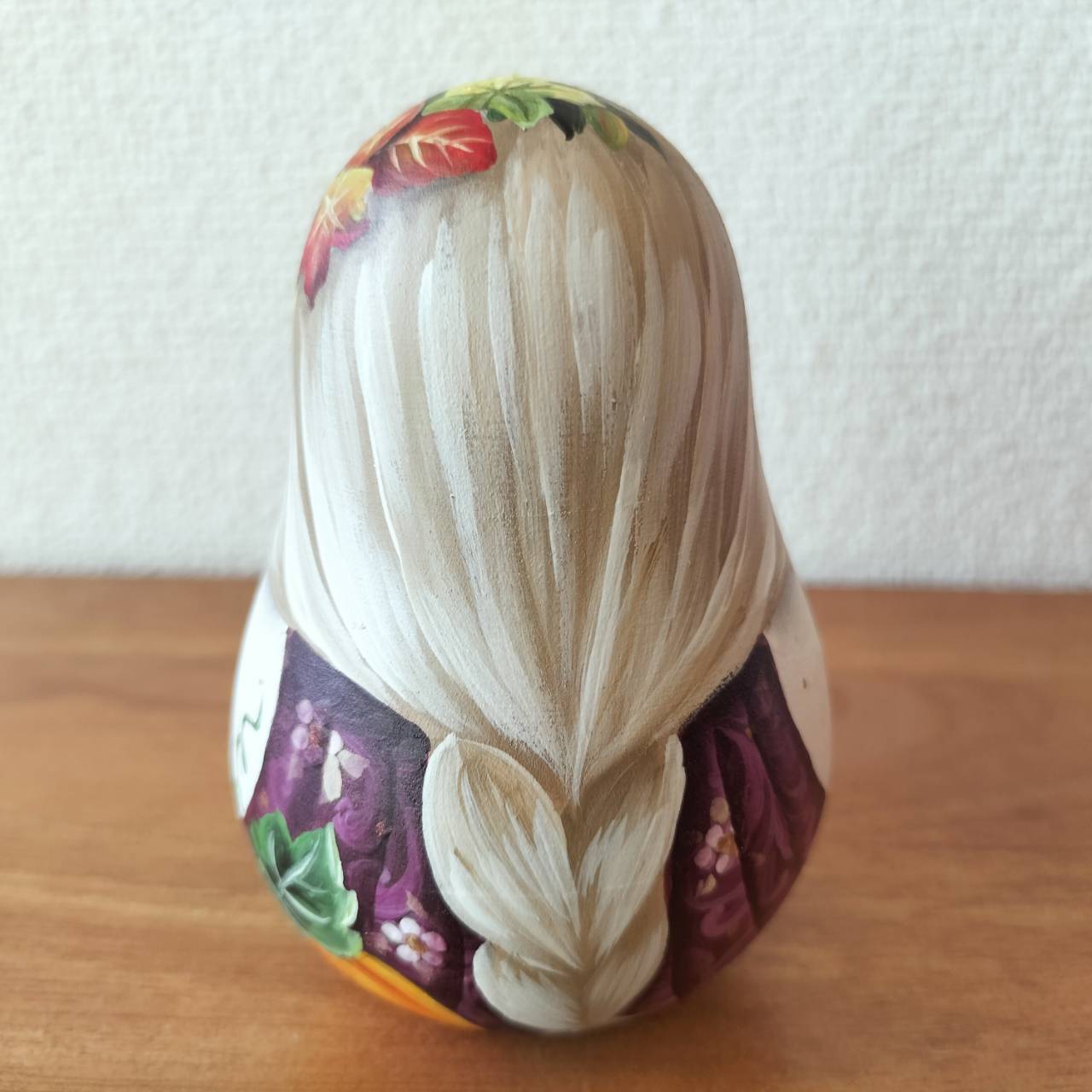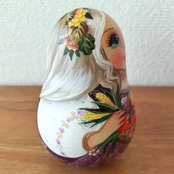 ロシアで有名なスヴェトラーナさんという作家の起き上がりこぼしです。前後左右に転がすと、カランコロンと音が出て、元の位置に戻ります。