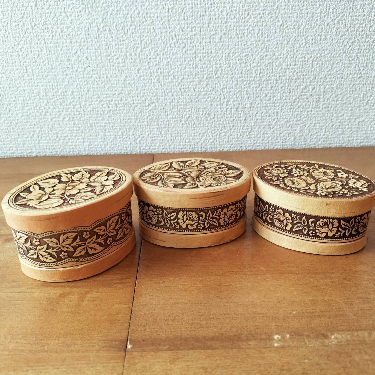 【BE230】北欧ロシア雑貨、ベレスタ・白樺の小物入れ 3個セット
