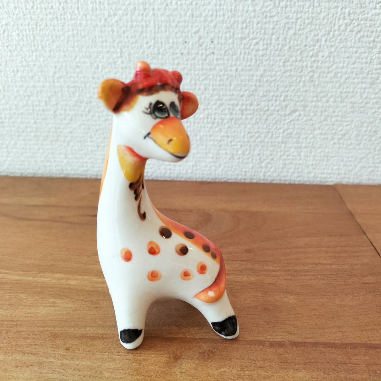 【GZ101】北欧ロシア雑貨 動物陶器 グジェリ焼 キリン