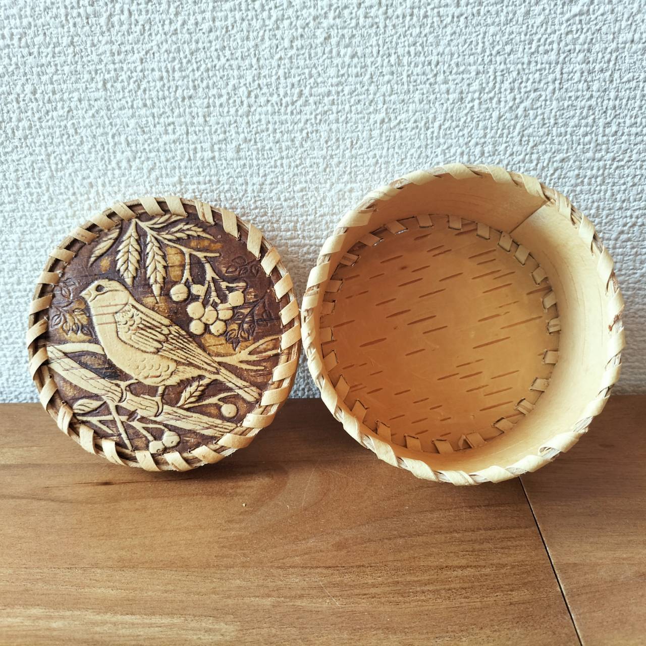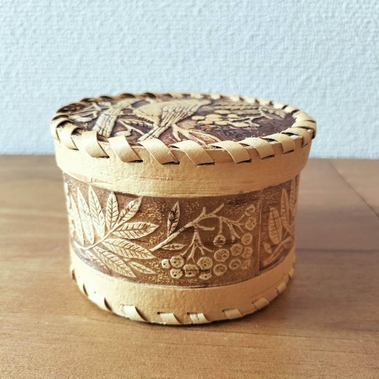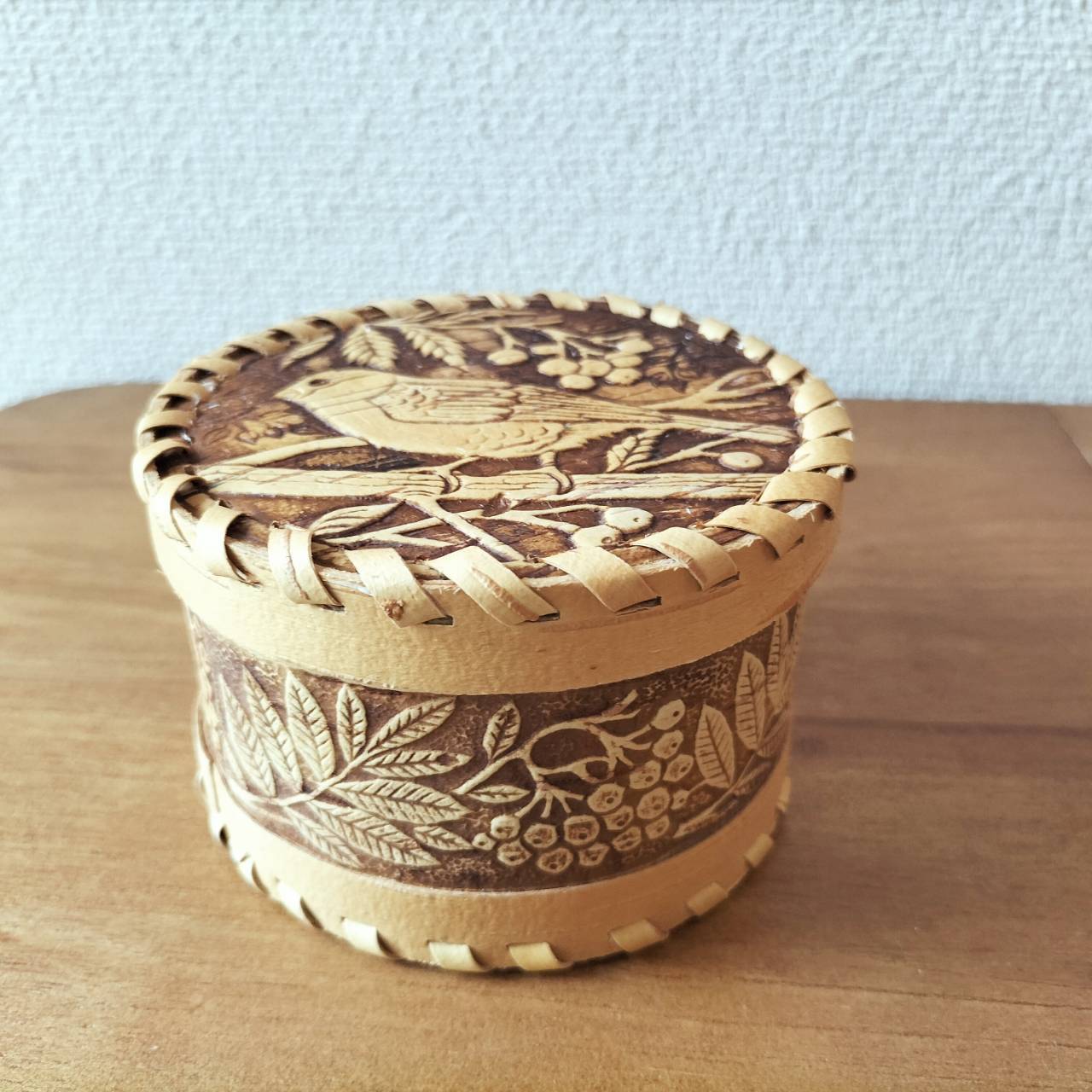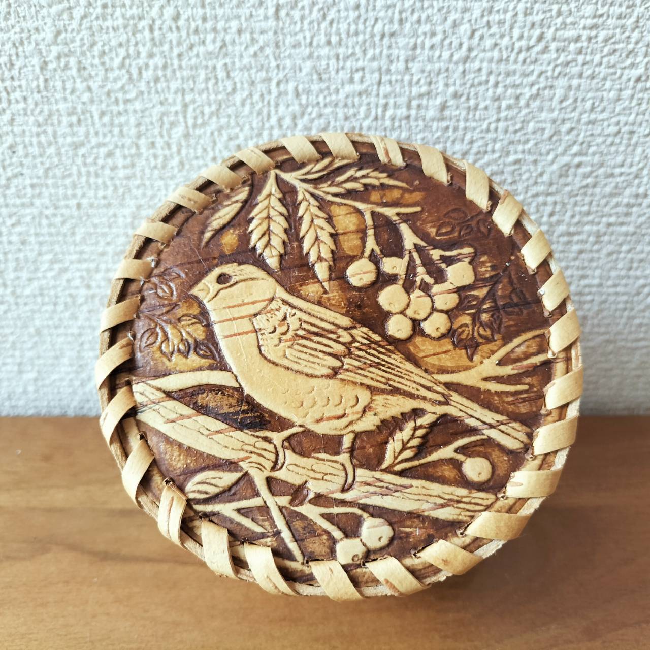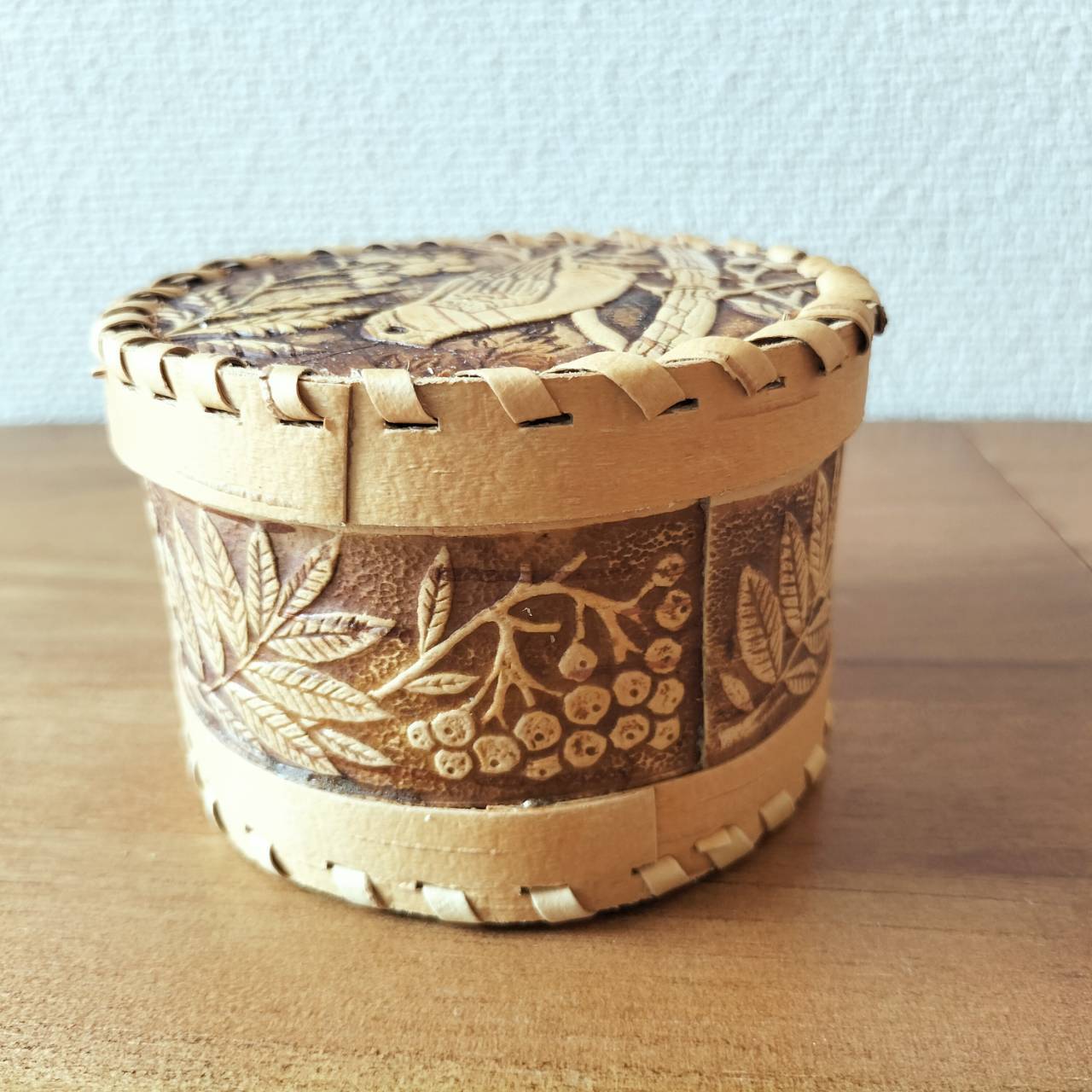 【BE137】北欧ロシア雑貨、ベレスタ・白樺の小物入れ ウソとリャビナ