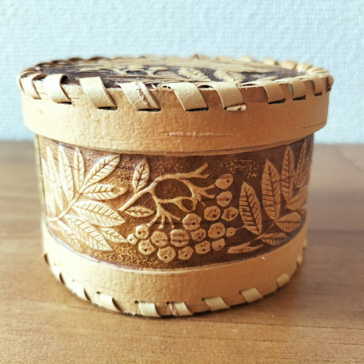 ロシア・北欧の小物入れ、ベレスタです。白樺の真皮で作られている白樺細工です。ベレスタ職人のハンドメイド作品です。
