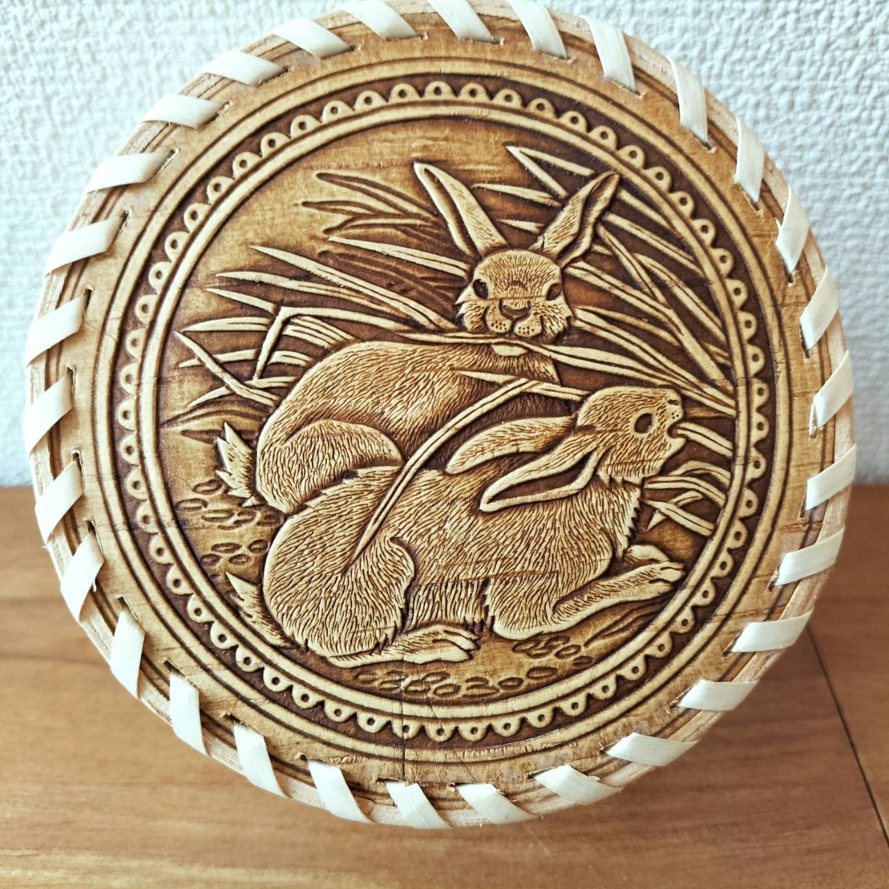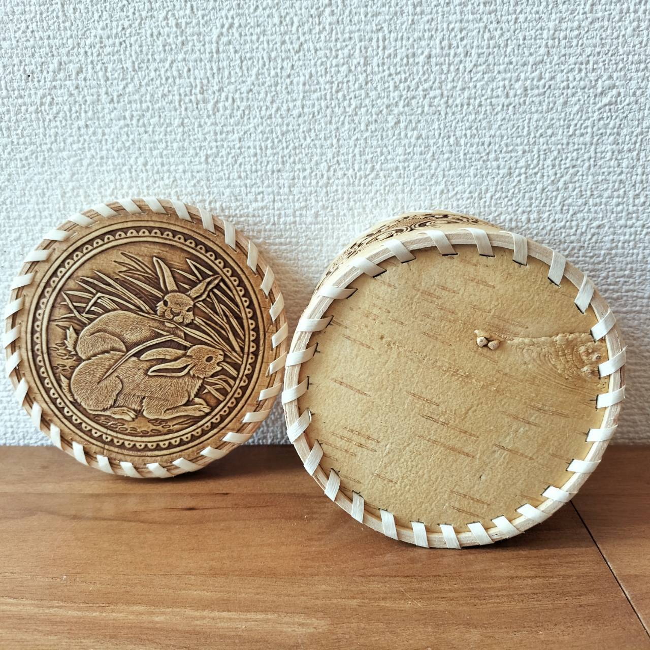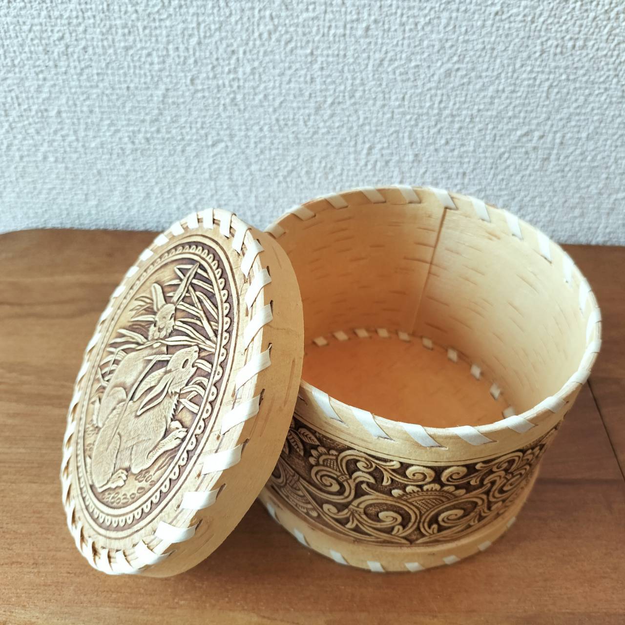【BE136】北欧ロシア雑貨、ベレスタ・白樺の小物入れ ウサギ