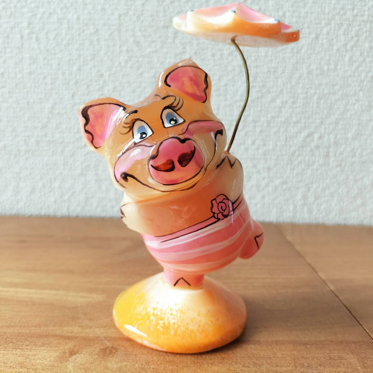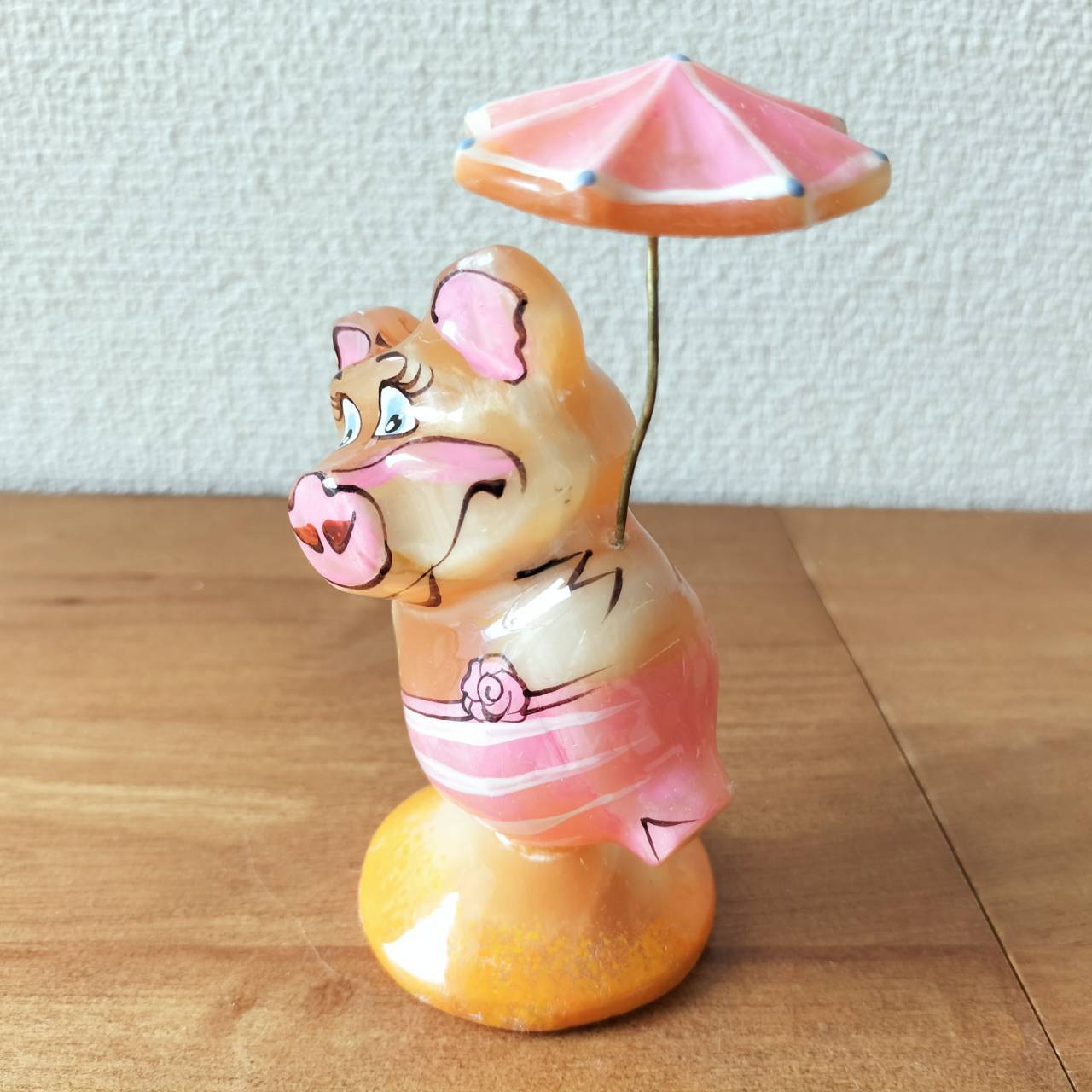 【CEL315】北欧ロシア雑貨天然石・セレナイト 水晶 ひょうきんぶた