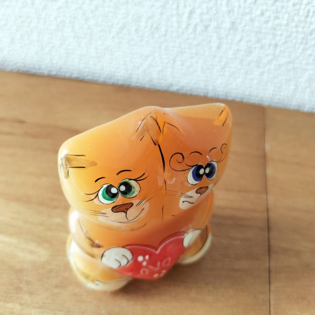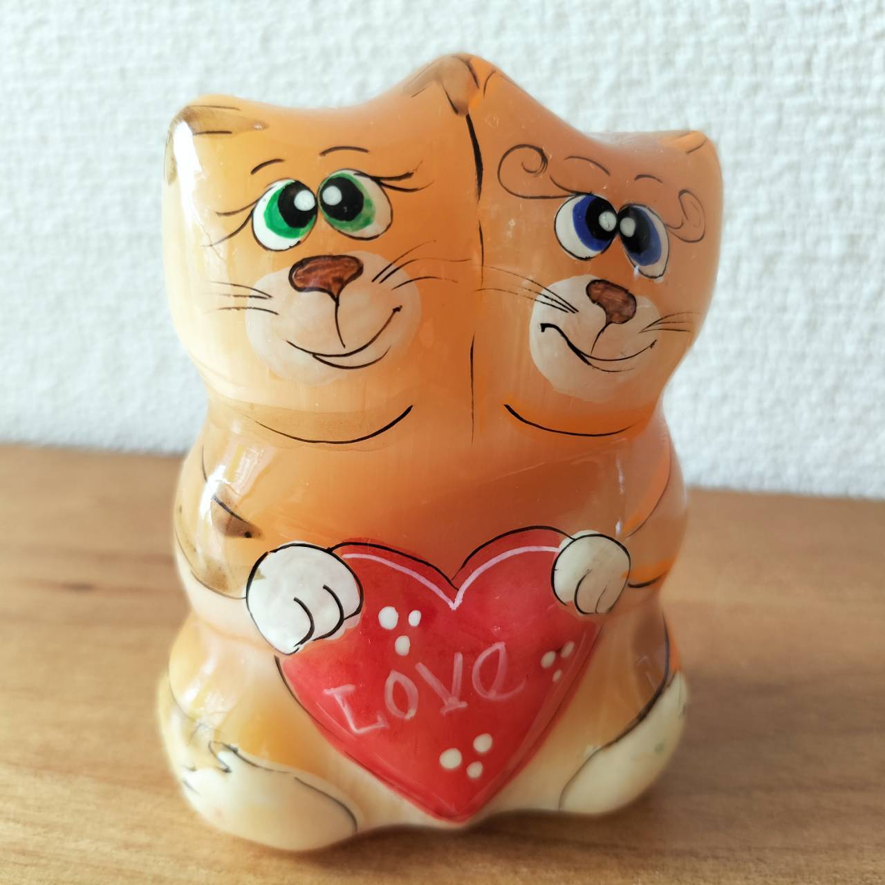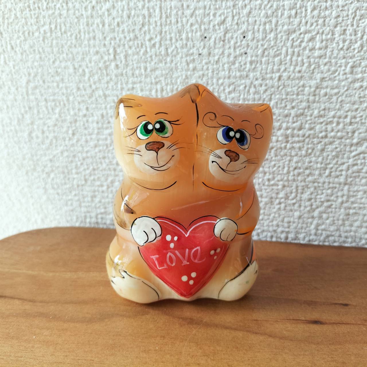 【CEL316】北欧ロシア雑貨天然石・セレナイト 水晶 ラブラブ猫